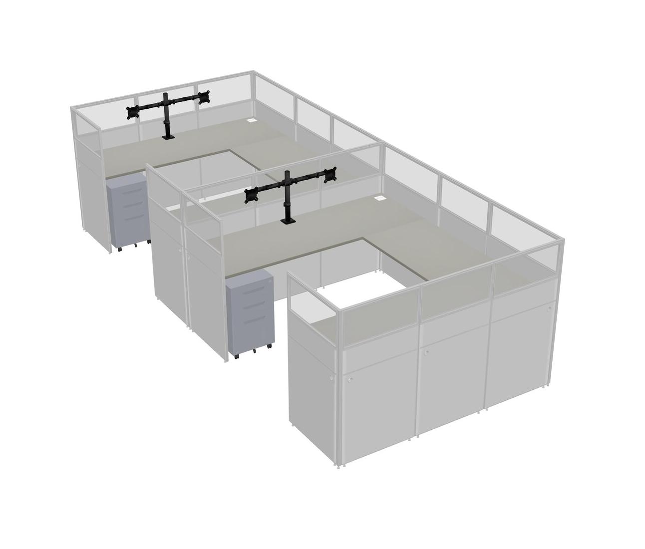 Système De Panneaux En U Grey Shadows Pour 2 Personnes + Bras D'écran (bras Doubles) + Tiroirs Mobiles En Métal Pour 2 Utilisateur(s)