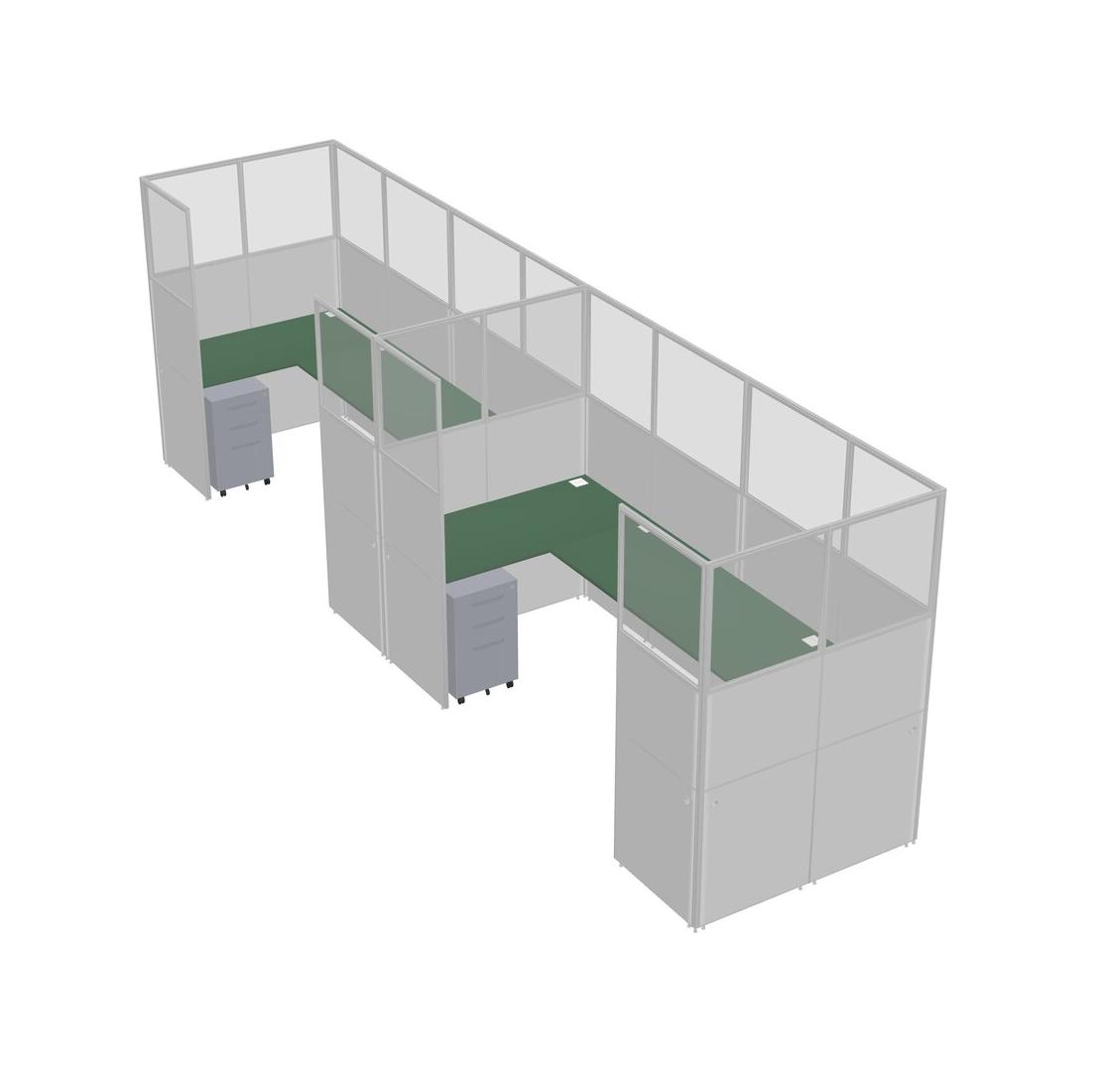 Système De Panneaux En U Vert Pour 2 Personnes + Tiroirs Mobiles En Métal Pour 2 Utilisateur(s)