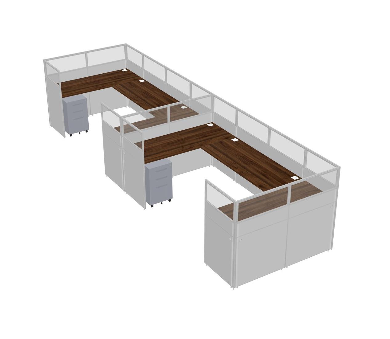Système De Panneaux En U En Noyer Columbia Pour 2 Personnes + Tiroirs Mobiles En Métal Pour 2 Utilisateurs