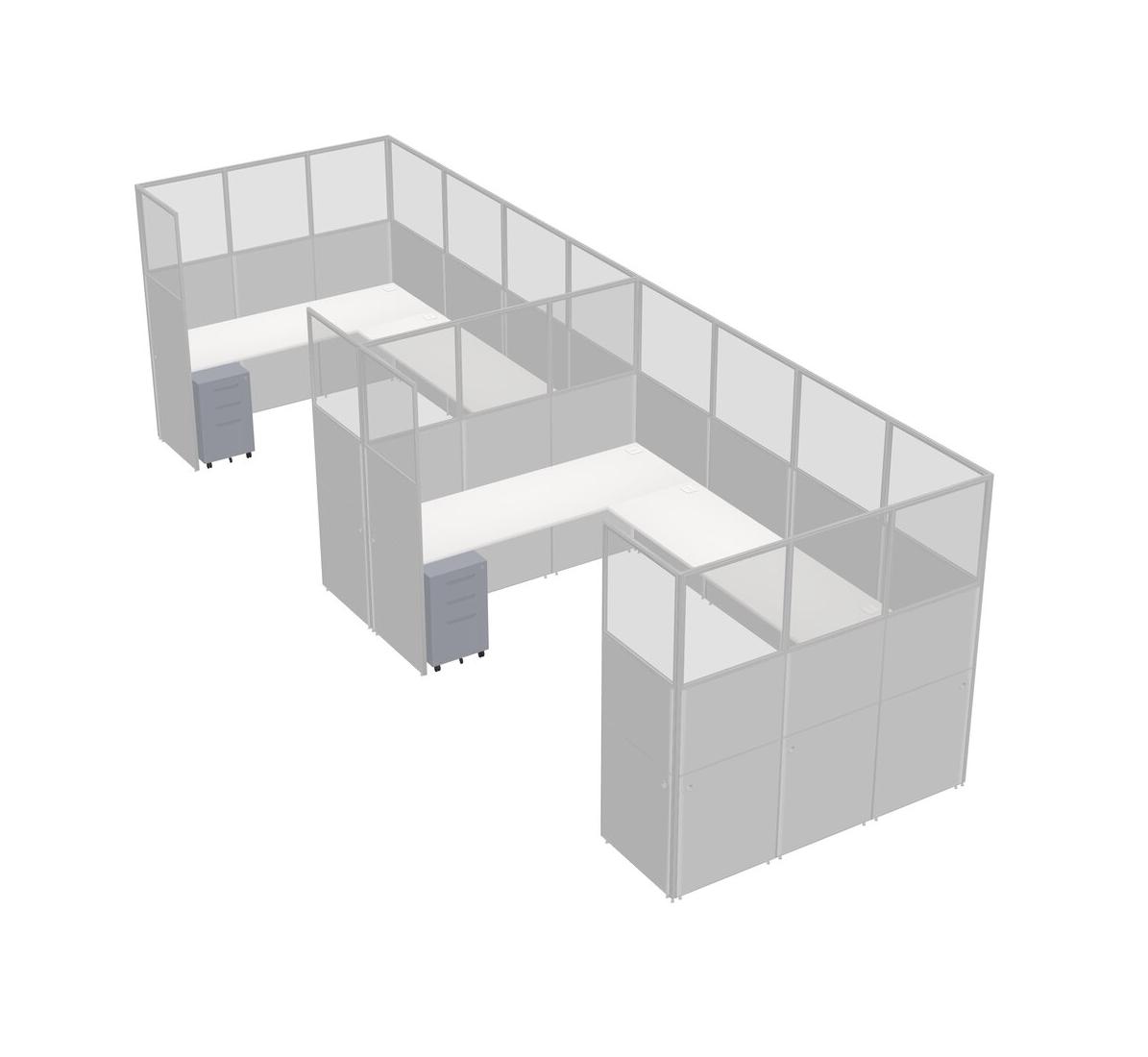 Système De Panneaux En U Blanc Pour 2 Personnes + Tiroirs Mobiles En Métal Pour 2 Utilisateur(s)