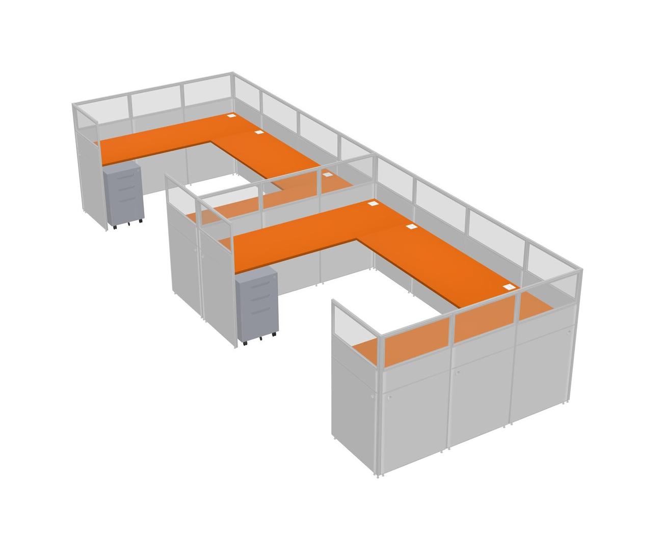 Système De Panneaux En U Orange Pour 2 Personnes + Tiroirs Mobiles En Métal Pour 2 Utilisateur(s)
