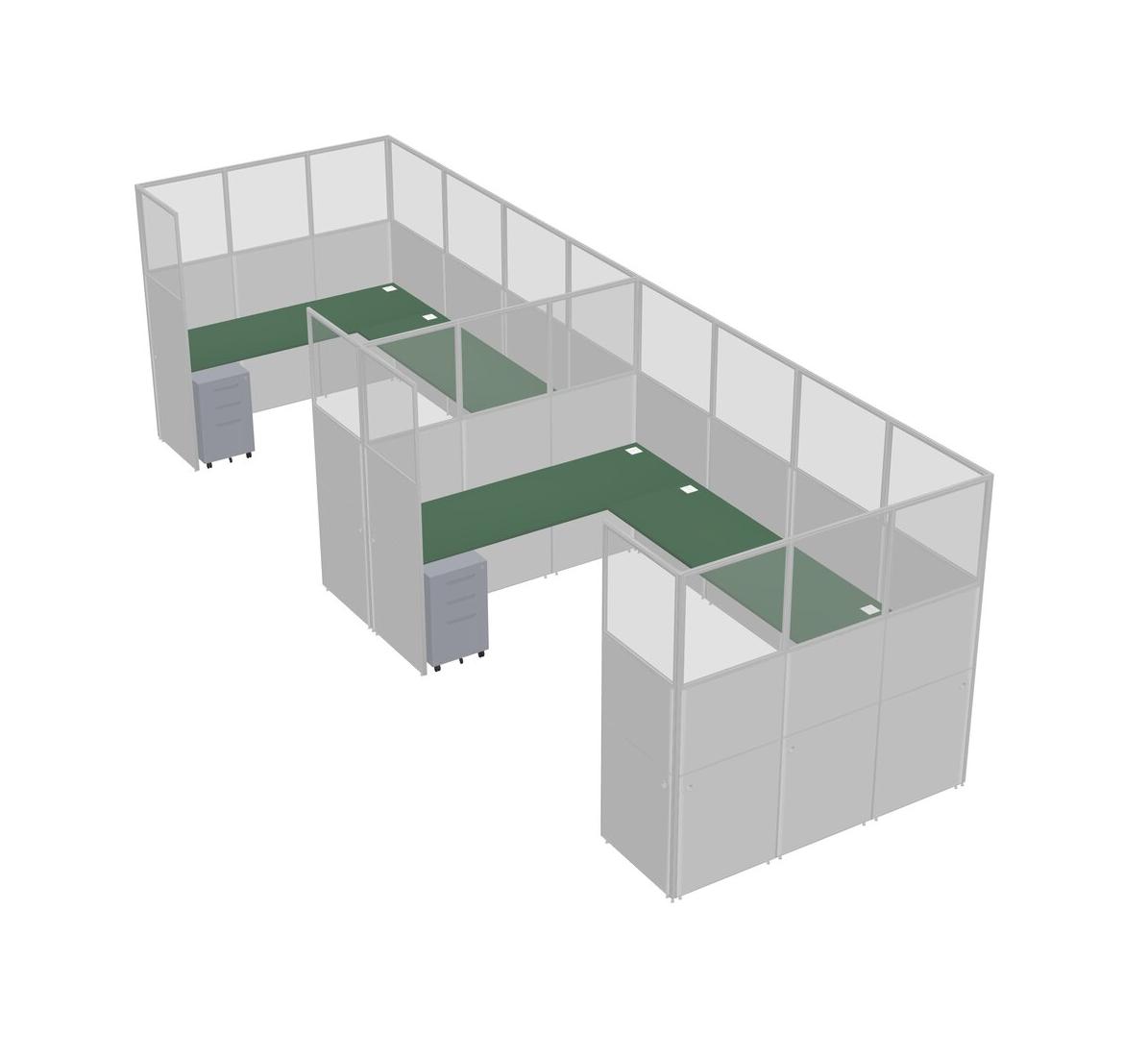 Système De Panneaux En U Vert Pour 2 Personnes + Tiroirs Mobiles En Métal Pour 2 Utilisateur(s)