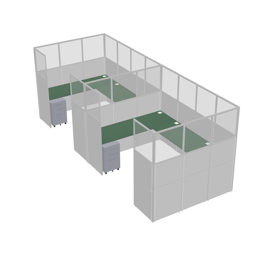 Système De Panneaux En U Vert Pour 2 Personnes + Tiroirs Mobiles En Métal Pour 2 Utilisateur(s)