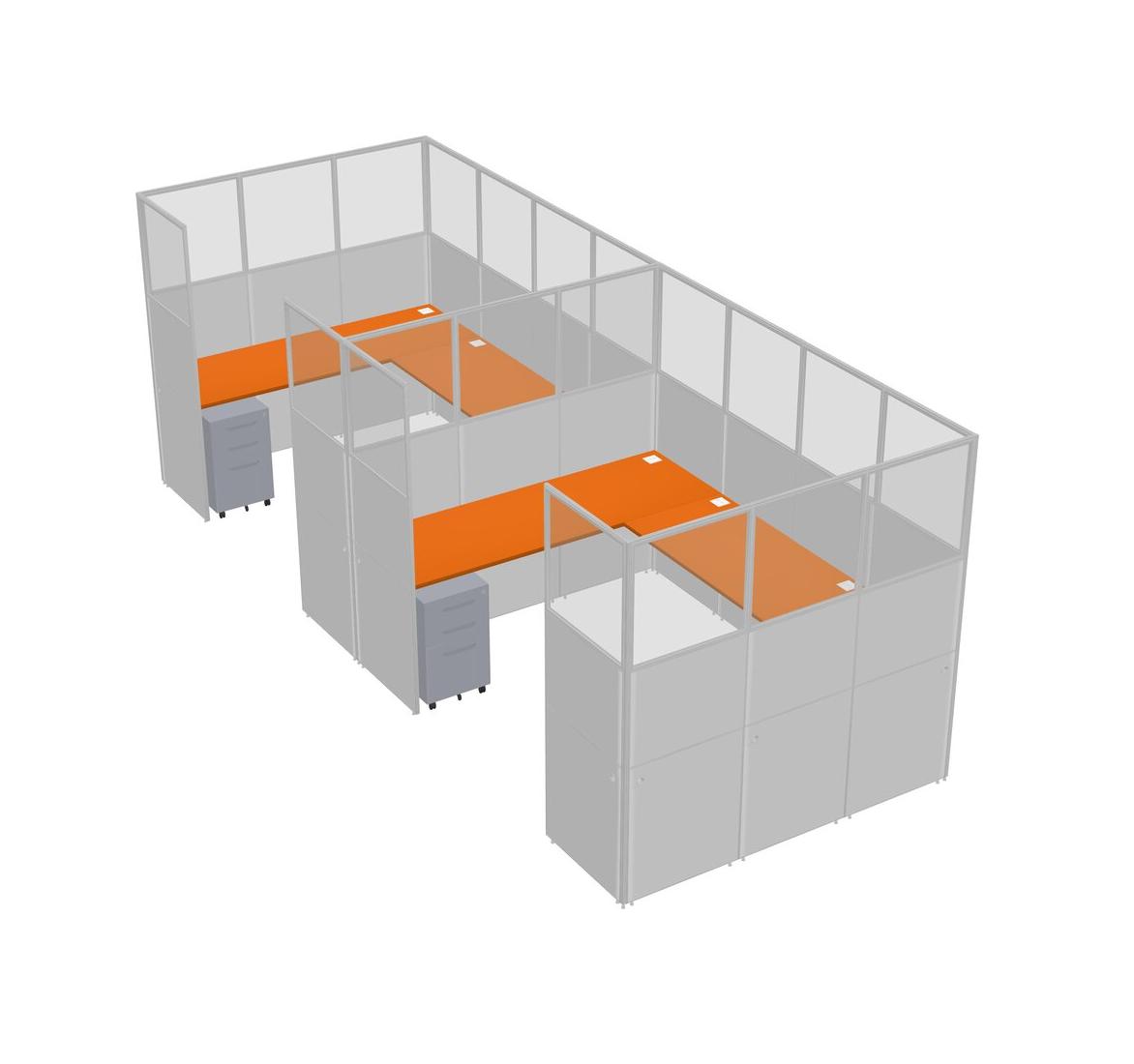 Système De Panneaux En U Orange Pour 2 Personnes + Tiroirs Mobiles En Métal Pour 2 Utilisateur(s)