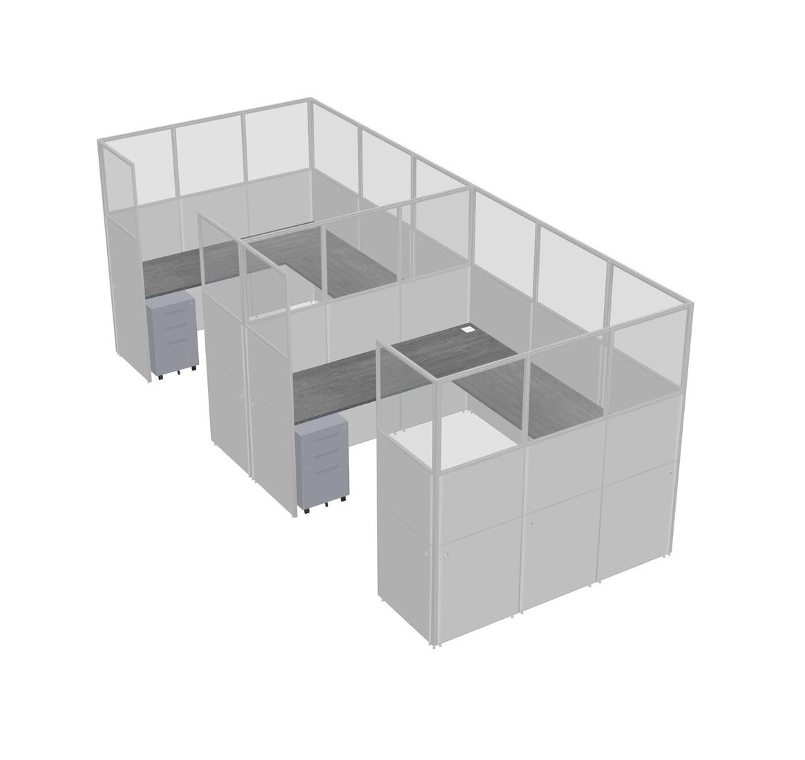Système De Panneaux En U Gris Pour 2 Personnes + Tiroirs Mobiles En Métal Pour 2 Utilisateur(s)