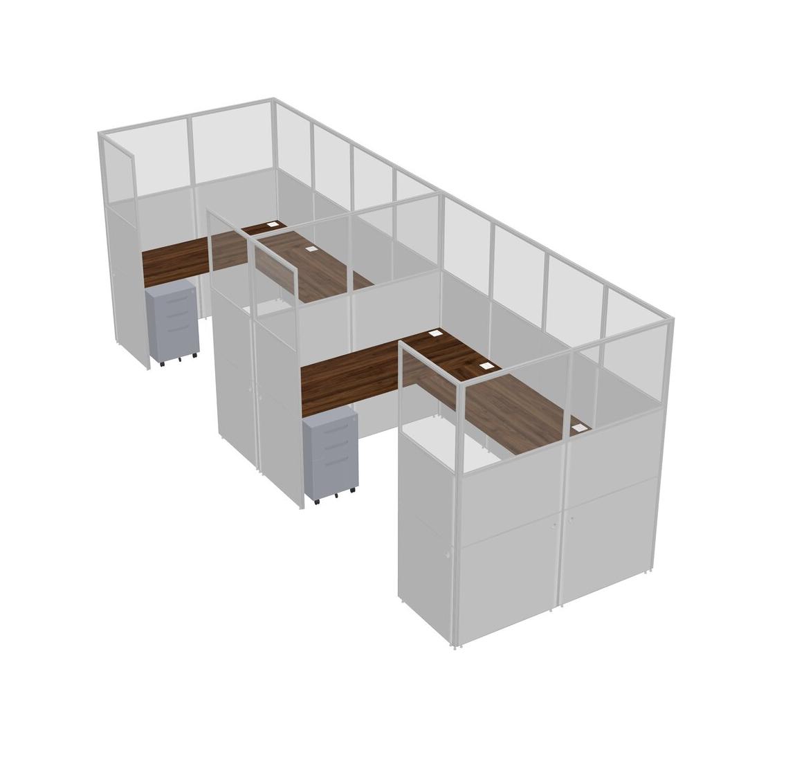 Système De Panneaux En U En Noyer Columbia Pour 2 Personnes + Tiroirs Mobiles En Métal Pour 2 Utilisateurs