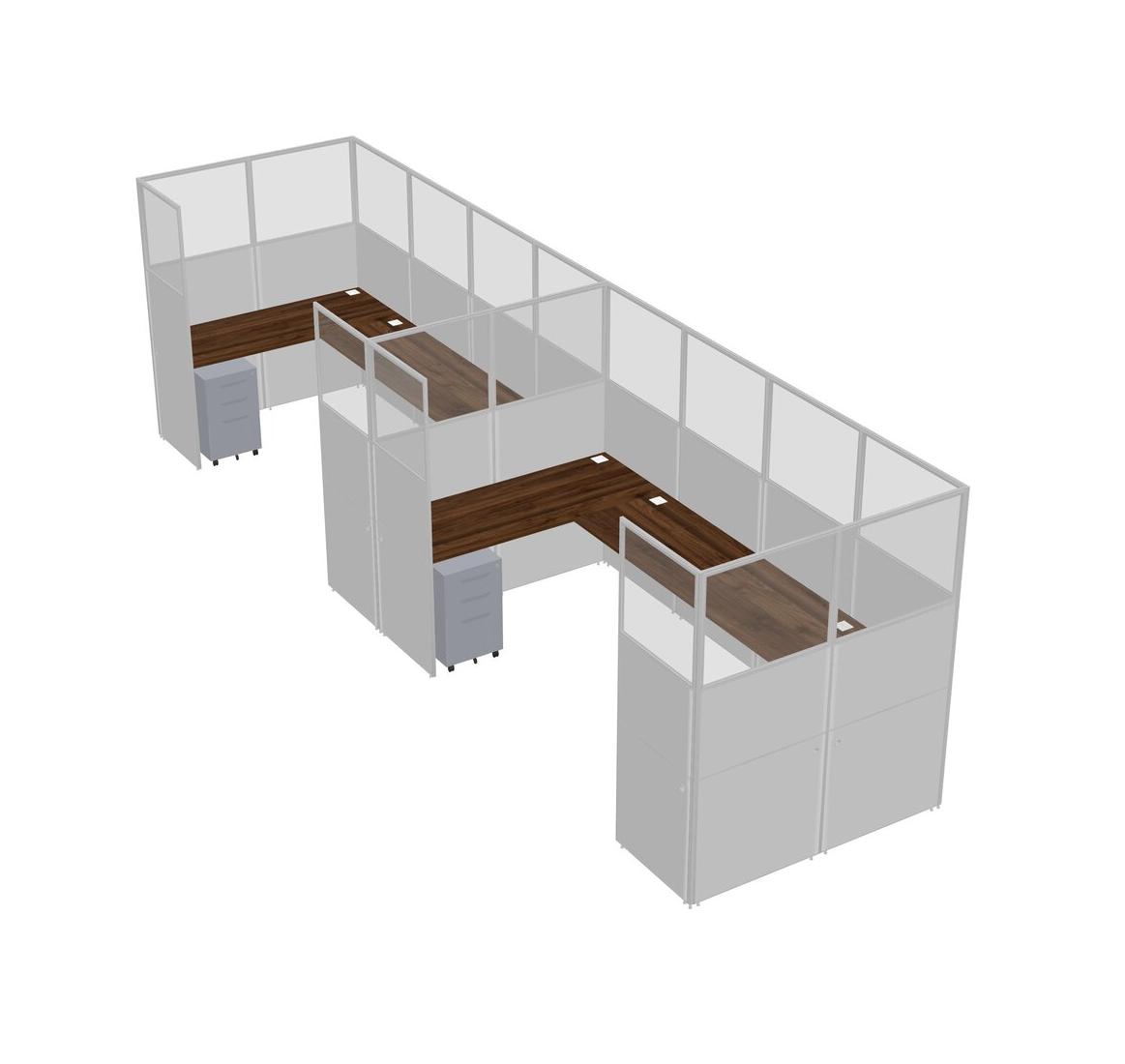 Système De Panneaux En U En Noyer Columbia Pour 2 Personnes + Tiroirs Mobiles En Métal Pour 2 Utilisateurs