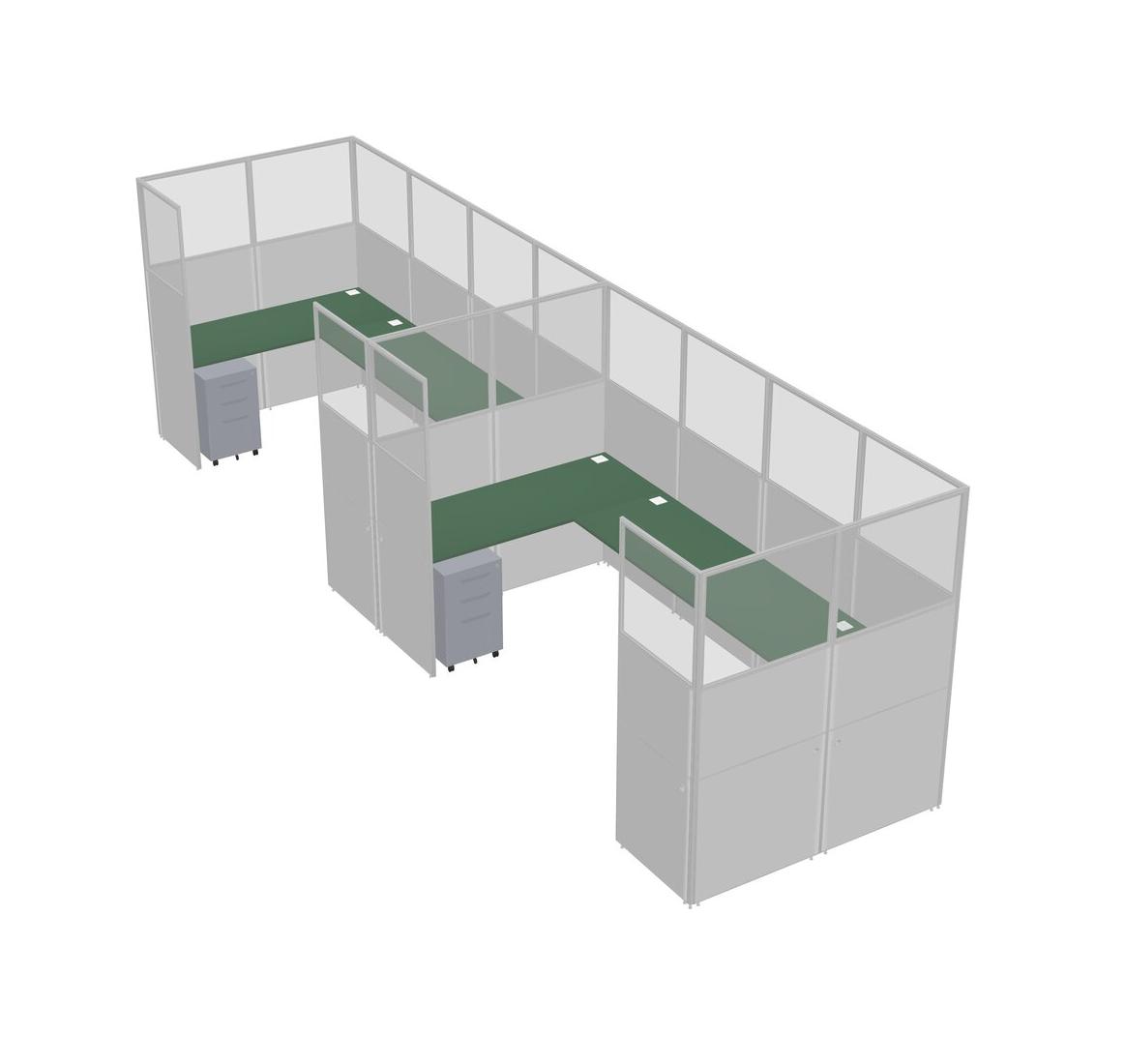Système De Panneaux En U Vert Pour 2 Personnes + Tiroirs Mobiles En Métal Pour 2 Utilisateur(s)