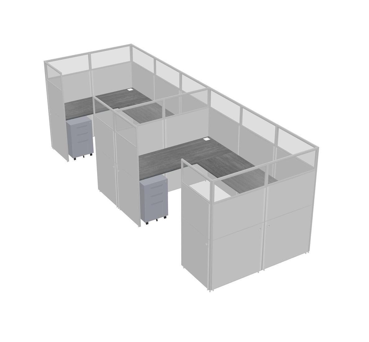 Système De Panneaux En U Gris Pour 2 Personnes + Tiroirs Mobiles En Métal Pour 2 Utilisateur(s)