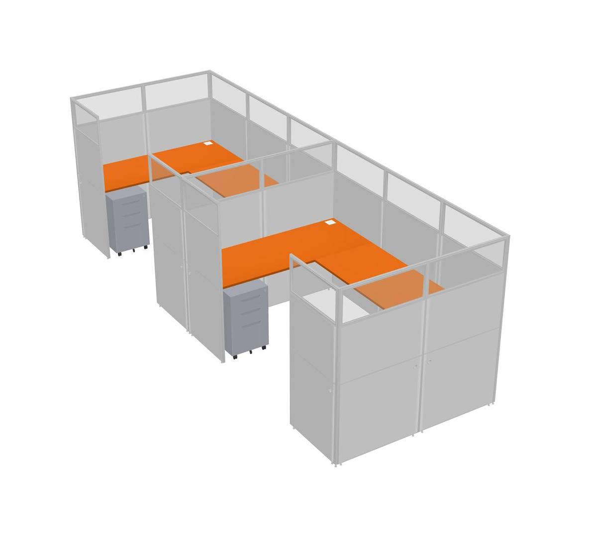 Système De Panneaux En U Orange Pour 2 Personnes + Tiroirs Mobiles En Métal Pour 2 Utilisateur(s)