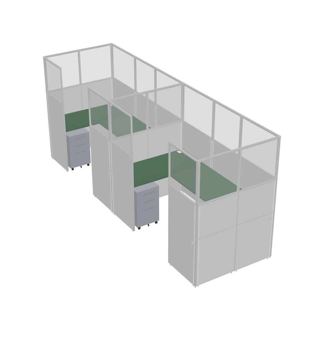 Système De Panneaux En U Vert Pour 2 Personnes + Tiroirs Mobiles En Métal Pour 2 Utilisateur(s)