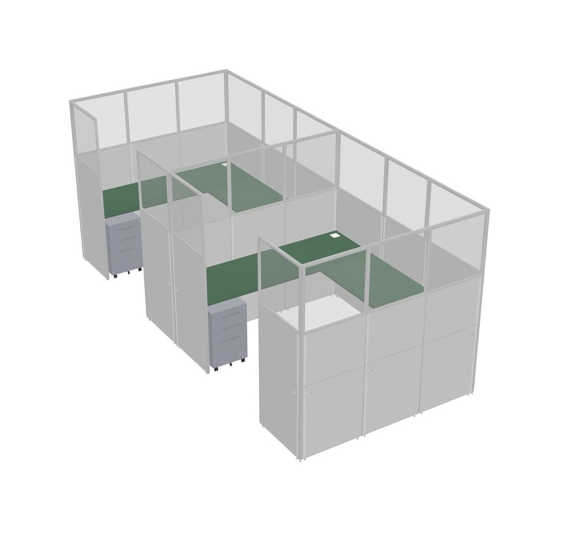 Système De Panneaux En U Vert Pour 2 Personnes + Tiroirs Mobiles En Métal Pour 2 Utilisateur(s)