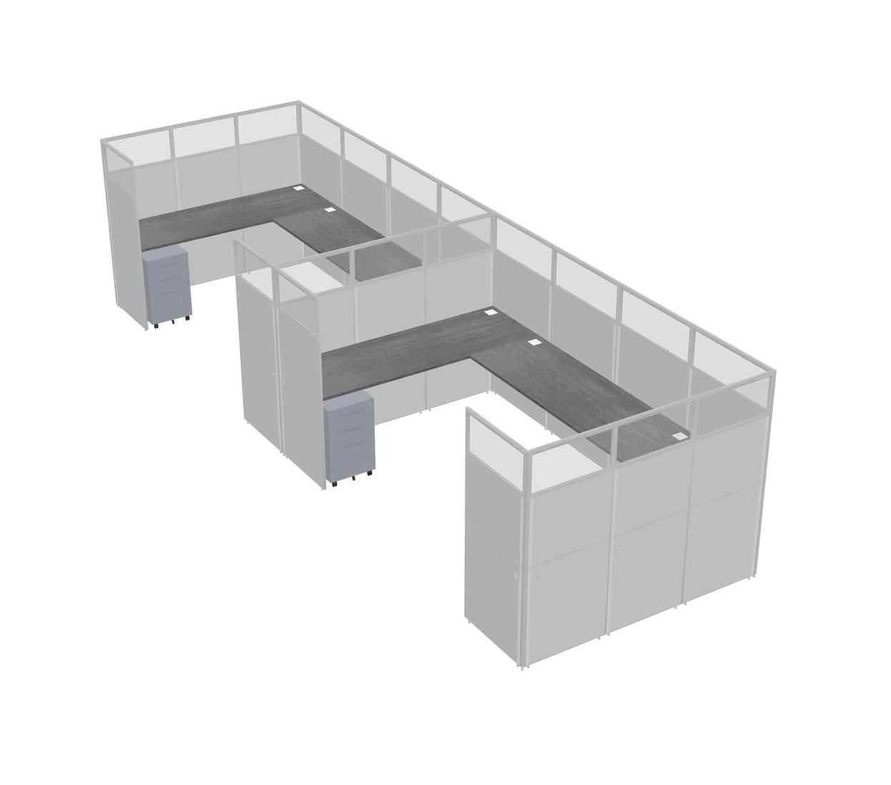 Système De Panneaux En U Gris Pour 2 Personnes + Tiroirs Mobiles En Métal Pour 2 Utilisateur(s)