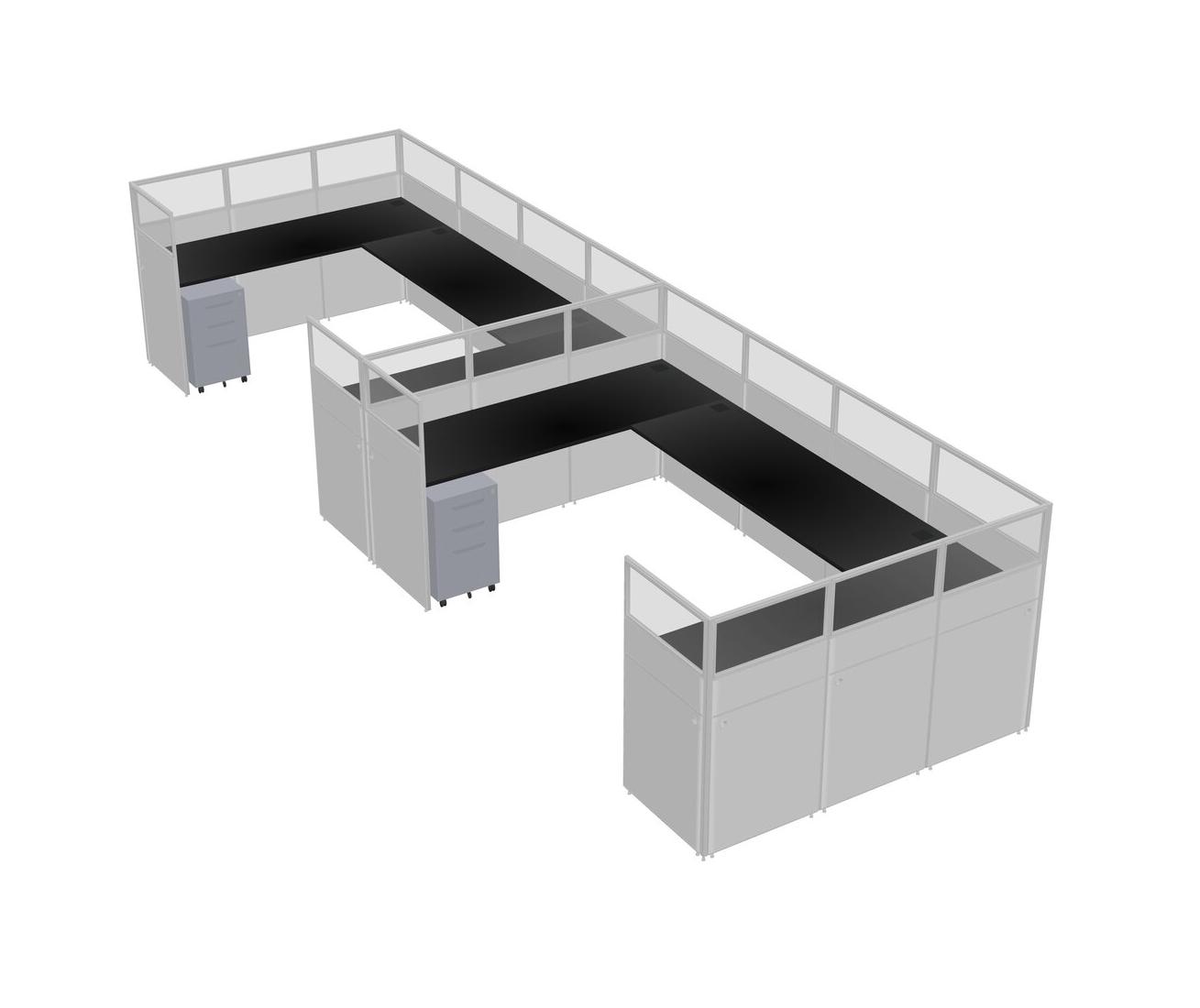 Système De Panneaux En U Noir Pour 2 Personnes + Tiroirs Mobiles En Métal Pour 2 Utilisateur(s)