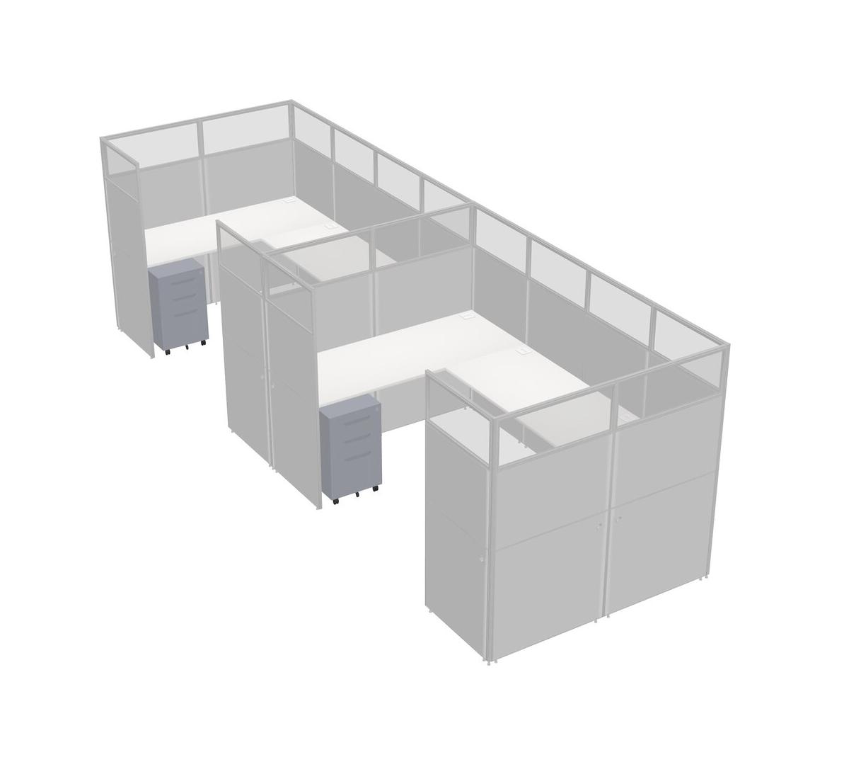 Système De Panneaux En U Blanc Pour 2 Personnes + Tiroirs Mobiles En Métal Pour 2 Utilisateur(s)