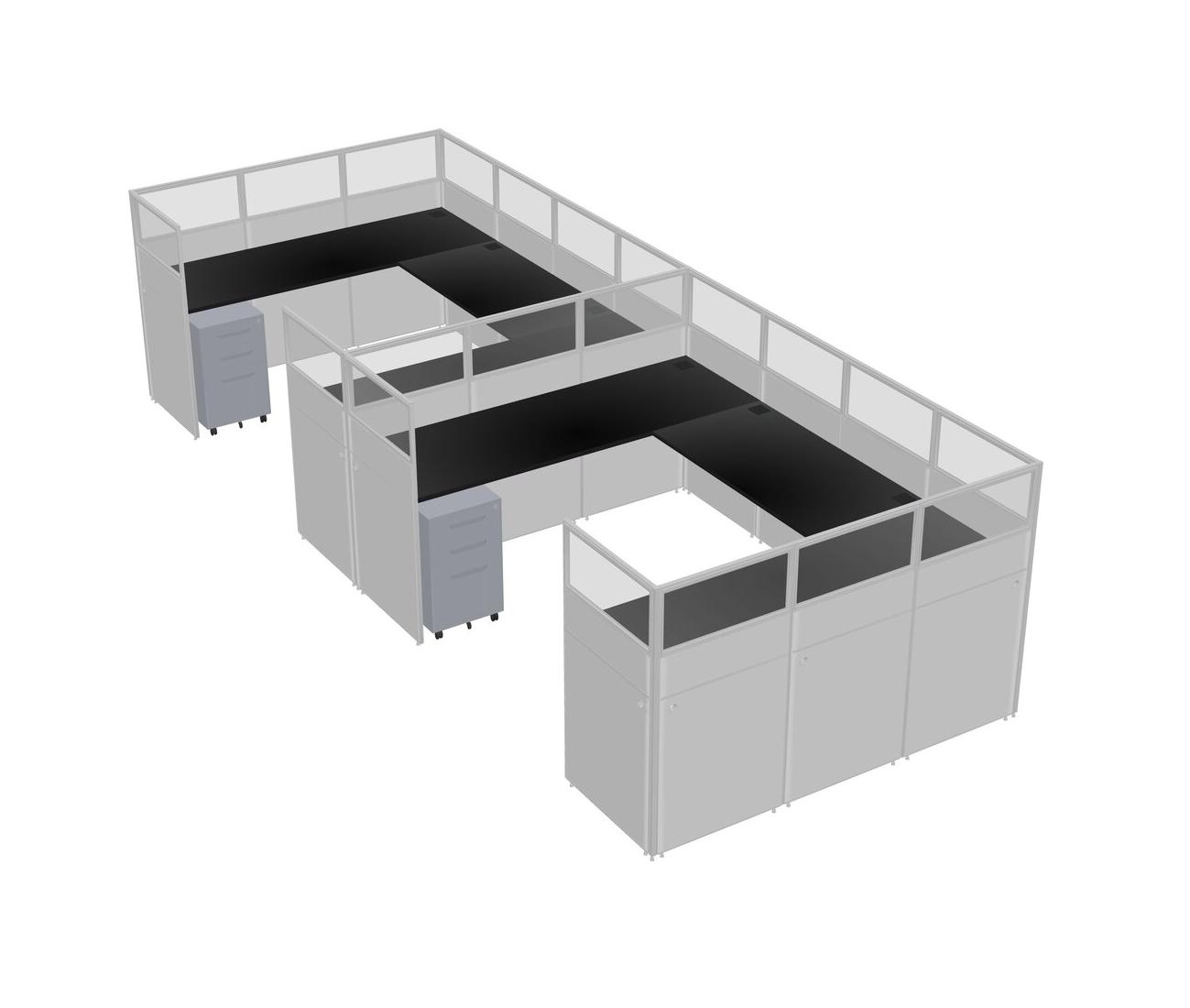 Système De Panneaux En U Noir Pour 2 Personnes + Tiroirs Mobiles En Métal Pour 2 Utilisateur(s)