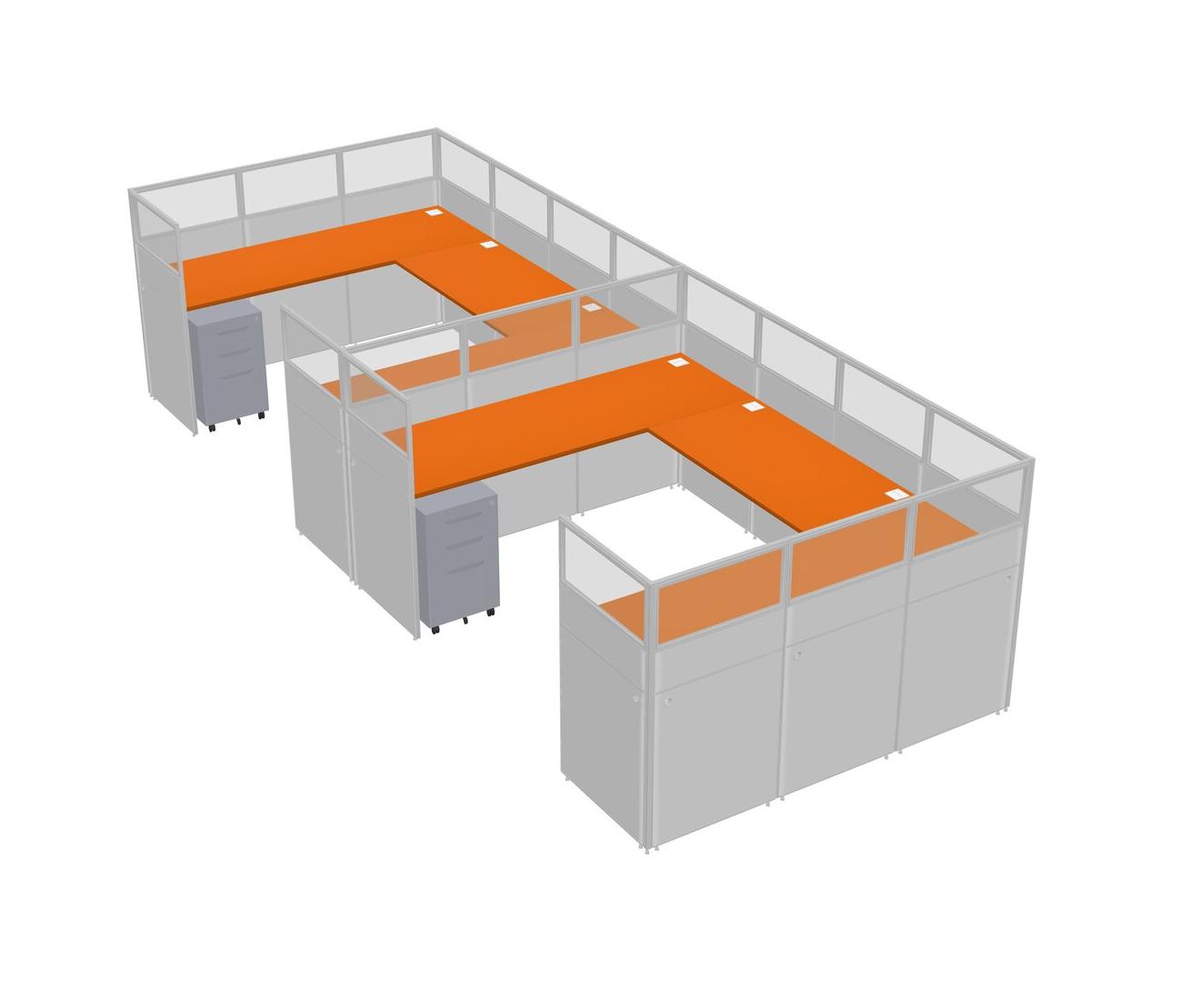 Système De Panneaux En U Orange Pour 2 Personnes + Tiroirs Mobiles En Métal Pour 2 Utilisateur(s)