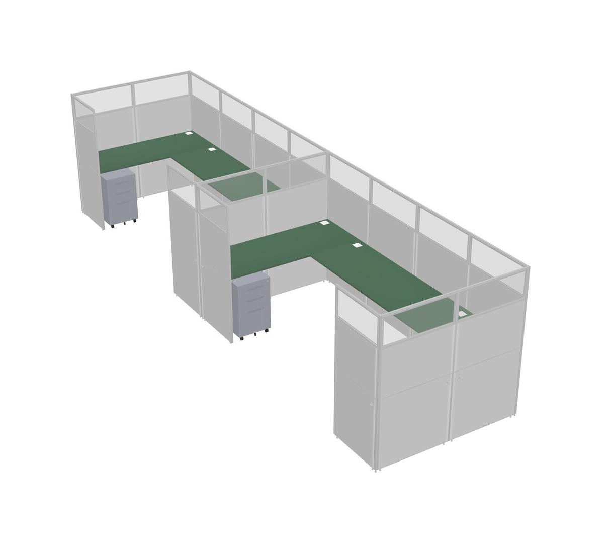 Système De Panneaux En U Vert Pour 2 Personnes + Tiroirs Mobiles En Métal Pour 2 Utilisateur(s)