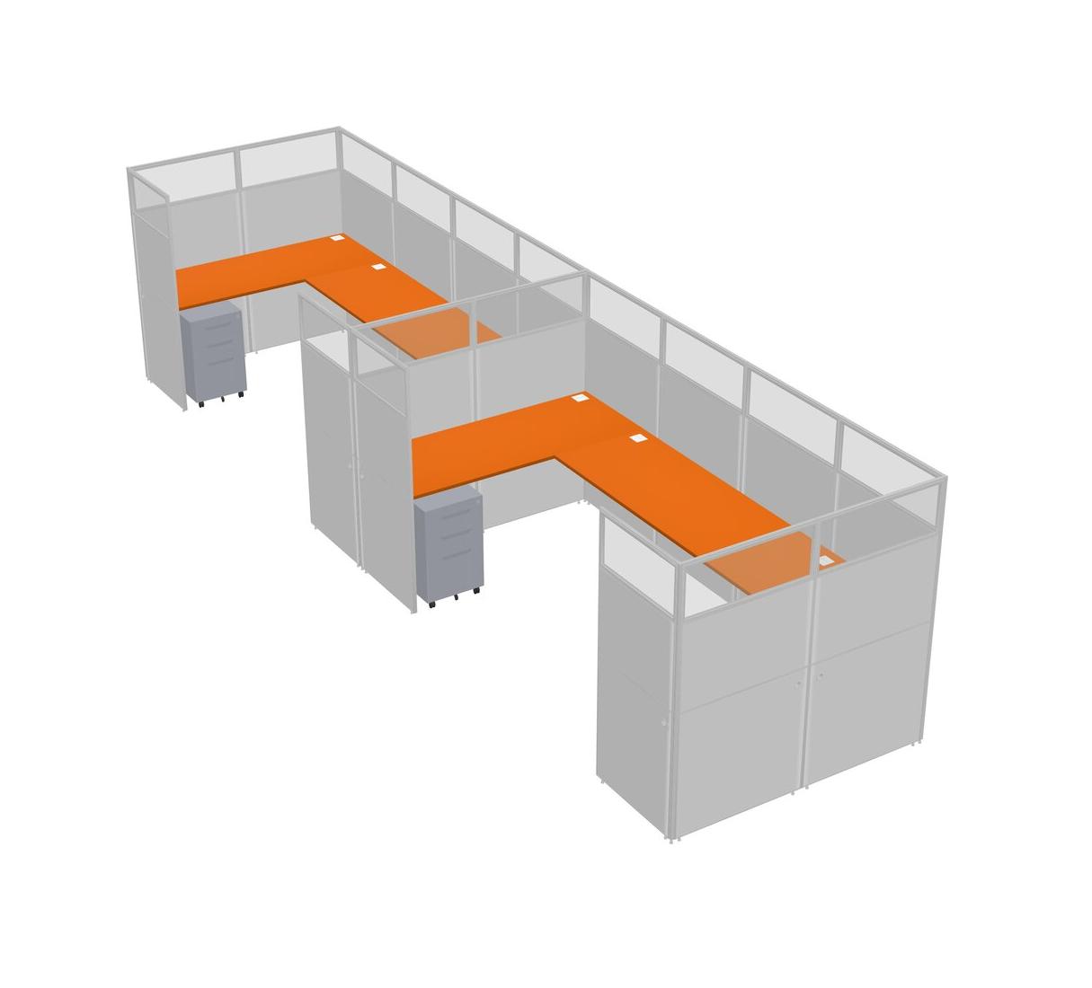 Système De Panneaux En U Orange Pour 2 Personnes + Tiroirs Mobiles En Métal Pour 2 Utilisateur(s)