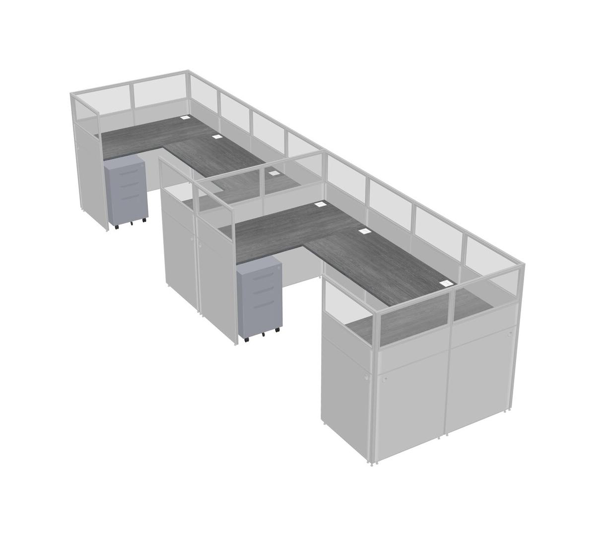Système De Panneaux En U Gris Pour 2 Personnes + Tiroirs Mobiles En Métal Pour 2 Utilisateur(s)