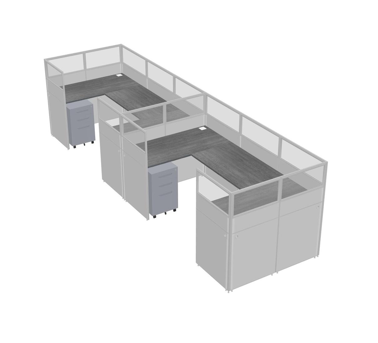 Système De Panneaux En U Gris Pour 2 Personnes + Tiroirs Mobiles En Métal Pour 2 Utilisateur(s)