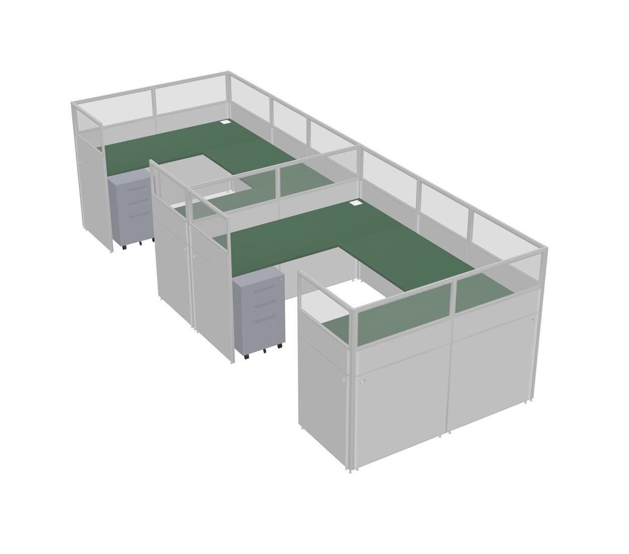 Système De Panneaux En U Vert Pour 2 Personnes + Tiroirs Mobiles En Métal Pour 2 Utilisateur(s)