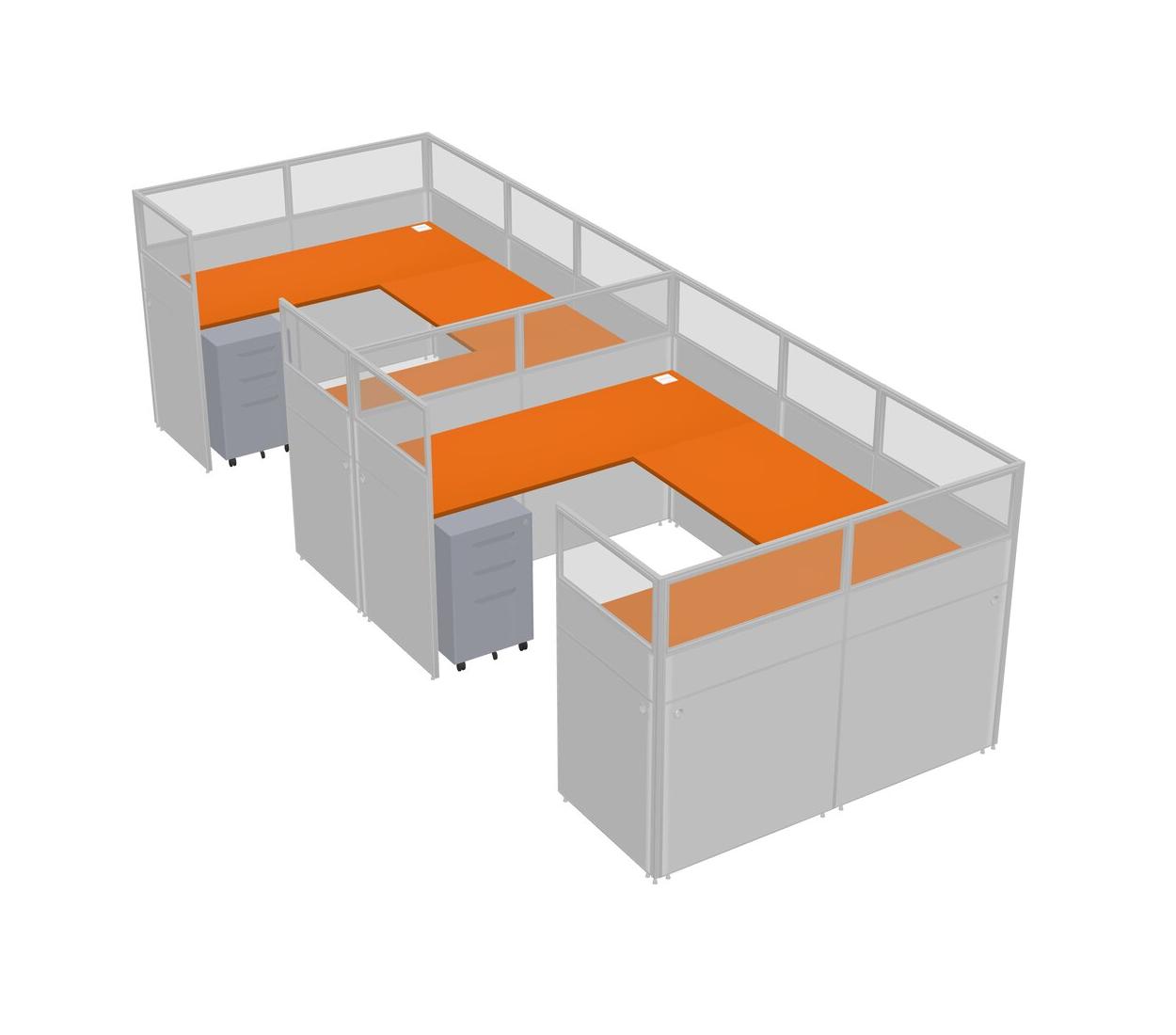 Système De Panneaux En U Orange Pour 2 Personnes + Tiroirs Mobiles En Métal Pour 2 Utilisateur(s)