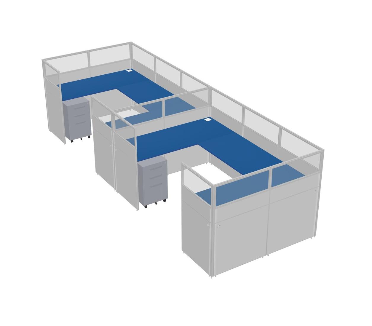 Système De Panneaux En U Prism Blue Pour 2 Personnes + Tiroirs Mobiles En Métal Pour 2 Utilisateurs