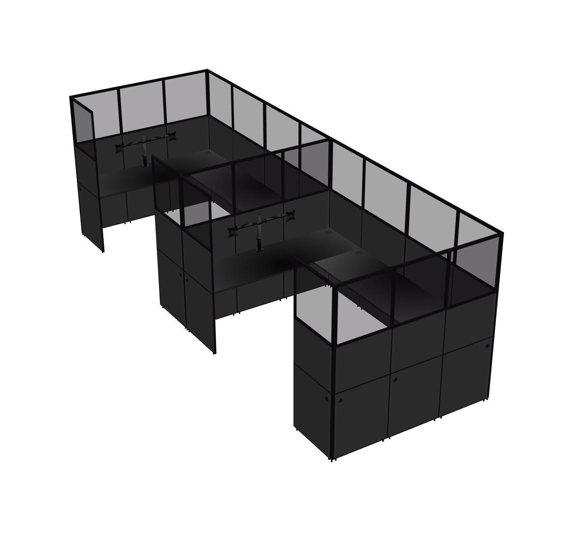 Système De Panneau En U Noir Pour 2 Personnes + Bras De Moniteur (bras Doubles) Pour 2 Utilisateur(s)