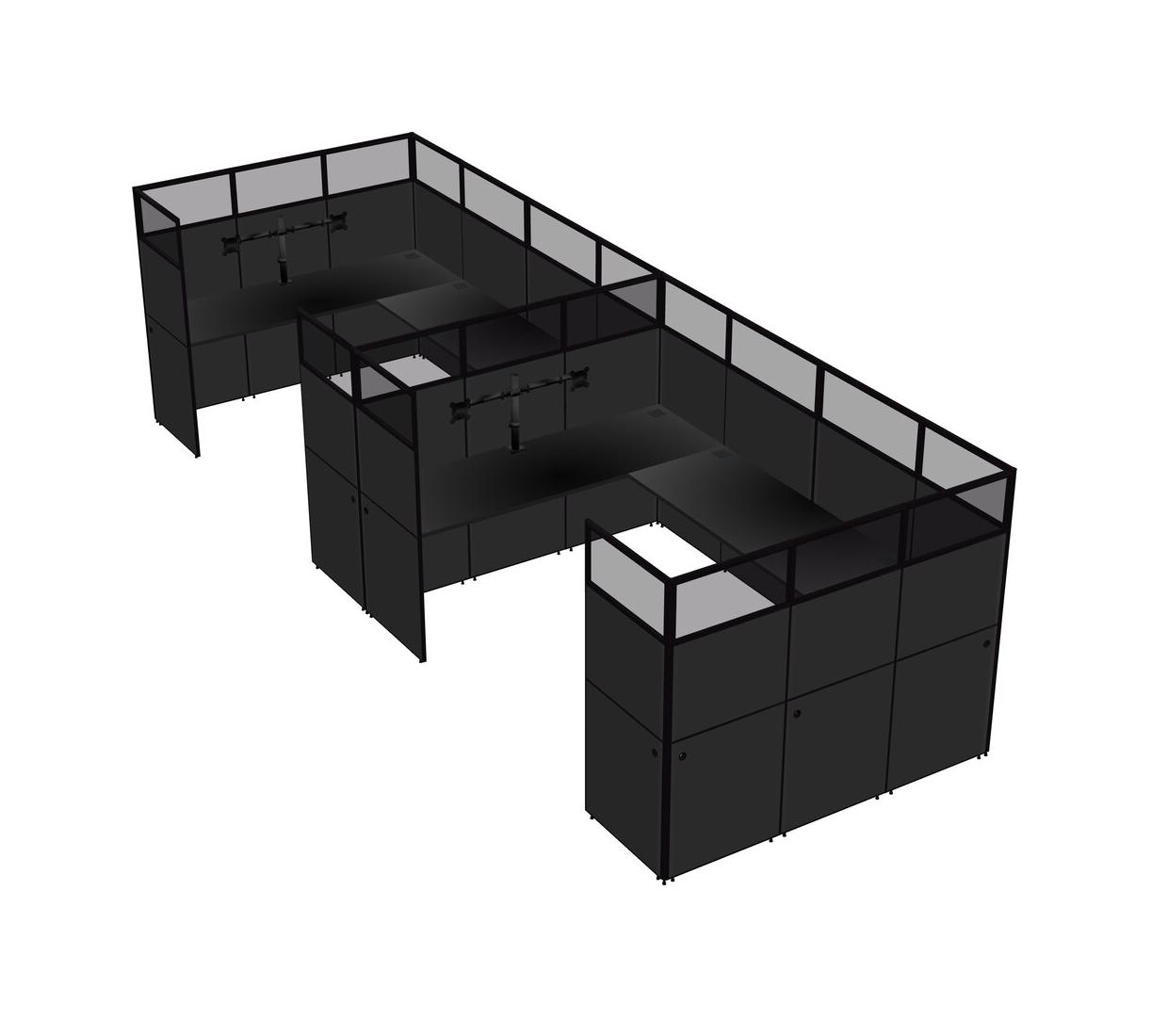 Système De Panneau En U Noir Pour 2 Personnes + Bras De Moniteur (bras Doubles) Pour 2 Utilisateur(s)