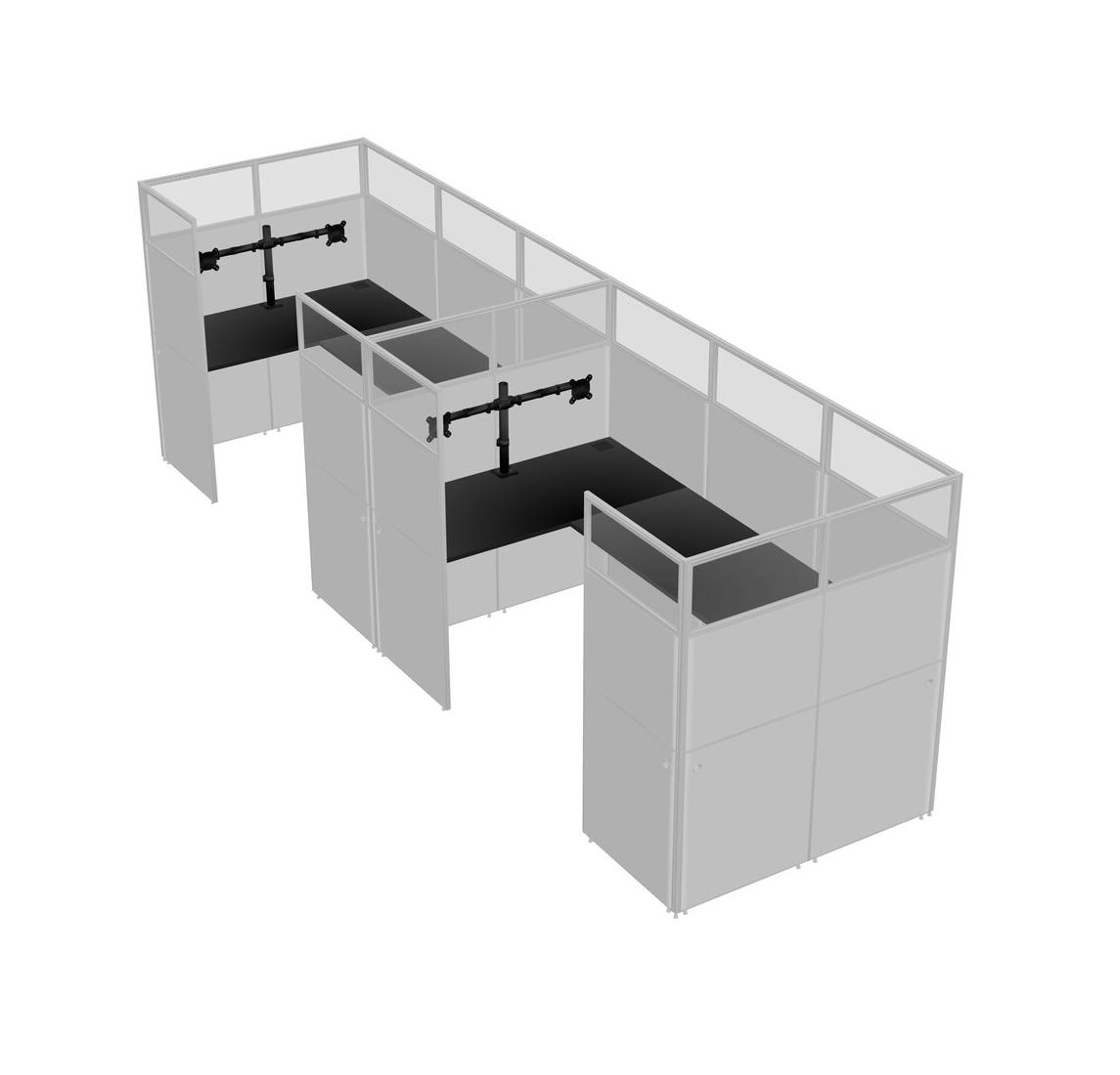 Système De Panneau En U Noir Pour 2 Personnes + Bras De Moniteur (bras Doubles) Pour 2 Utilisateur(s)