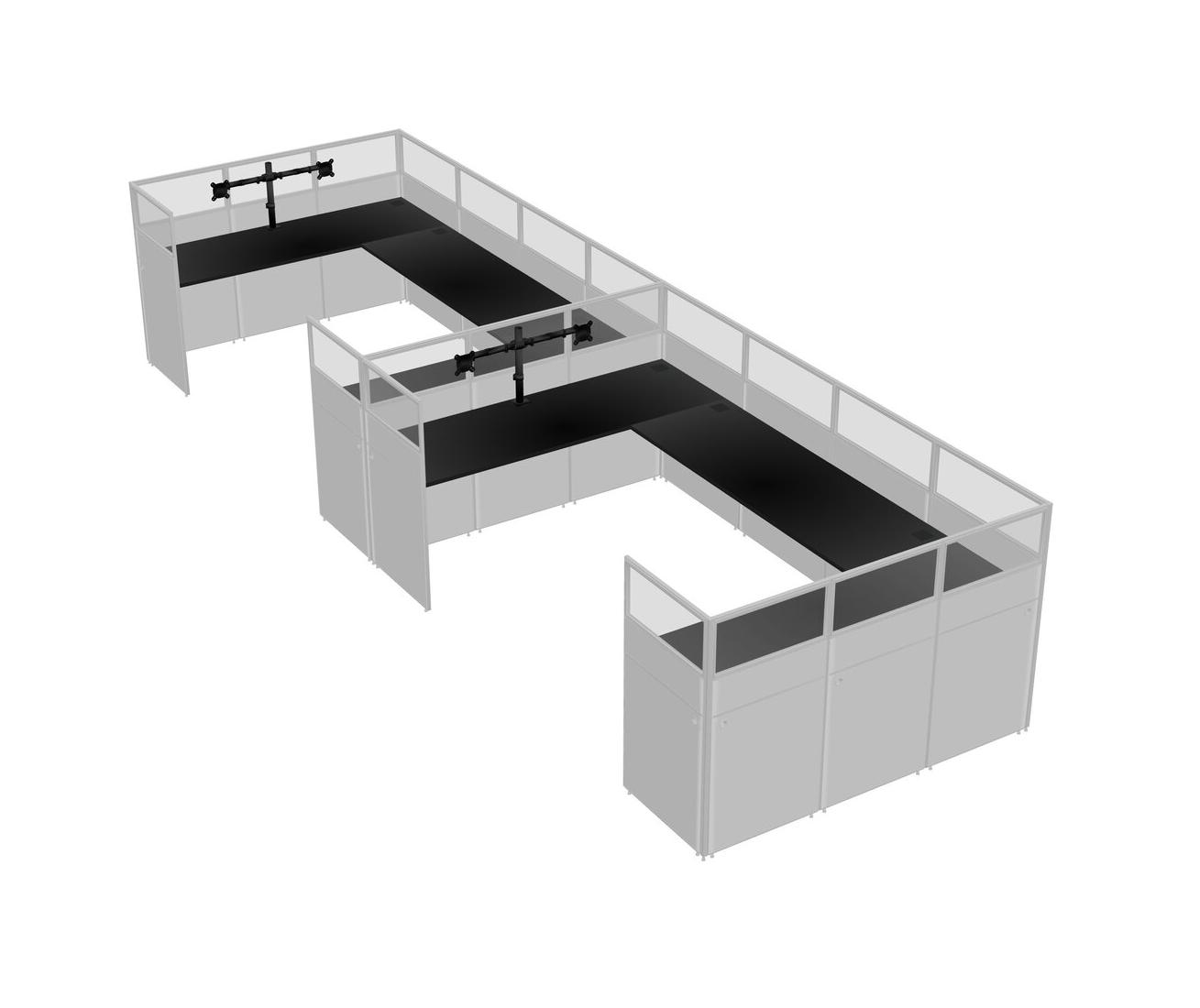 Système De Panneau En U Noir Pour 2 Personnes + Bras De Moniteur (bras Doubles) Pour 2 Utilisateur(s)