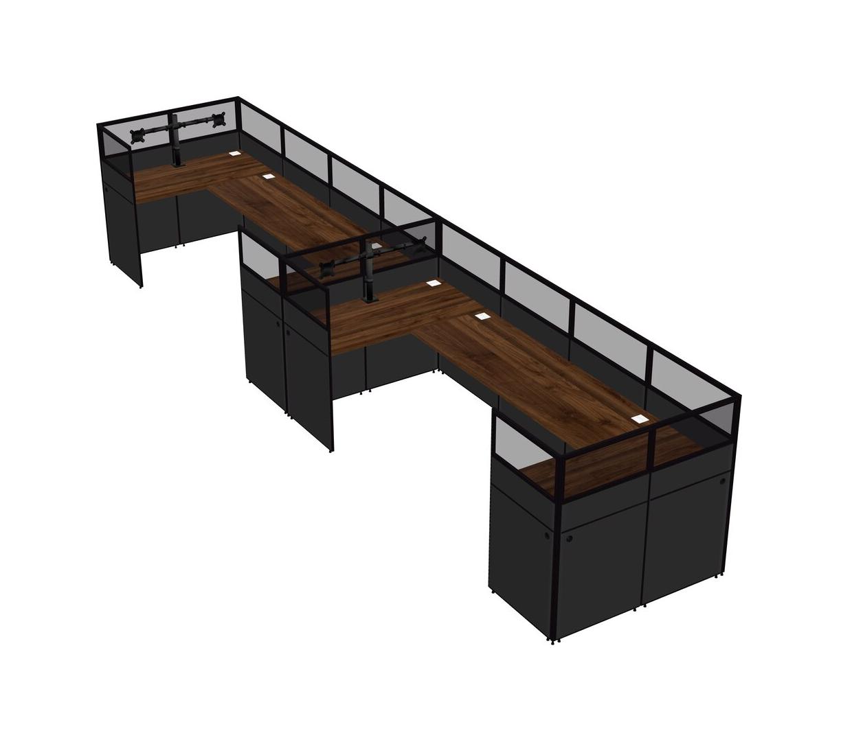 Système De Panneaux En U En Noyer Columbia Pour 2 Personnes + Bras De Moniteur (bras Doubles) Pour 2 Utilisateur(s)