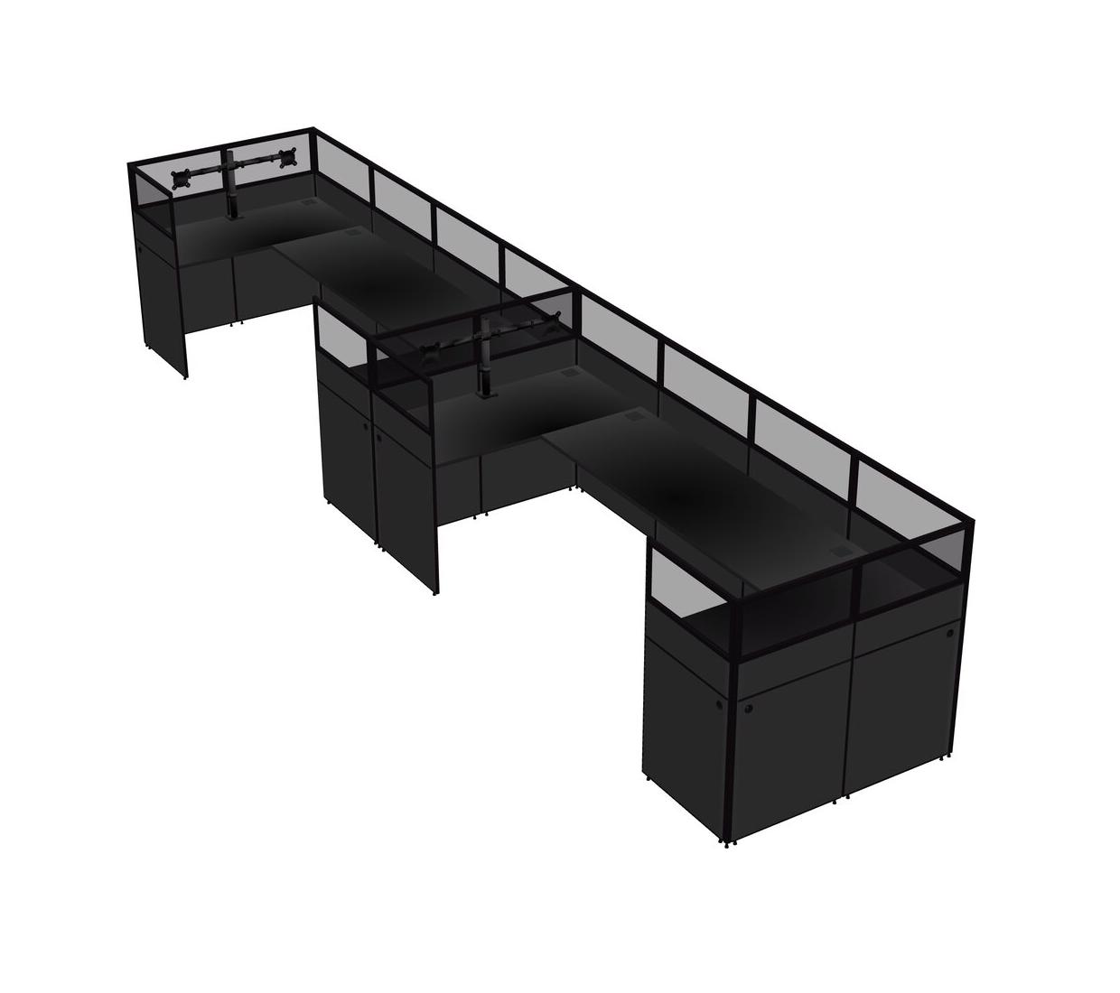 Système De Panneau En U Noir Pour 2 Personnes + Bras De Moniteur (bras Doubles) Pour 2 Utilisateur(s)