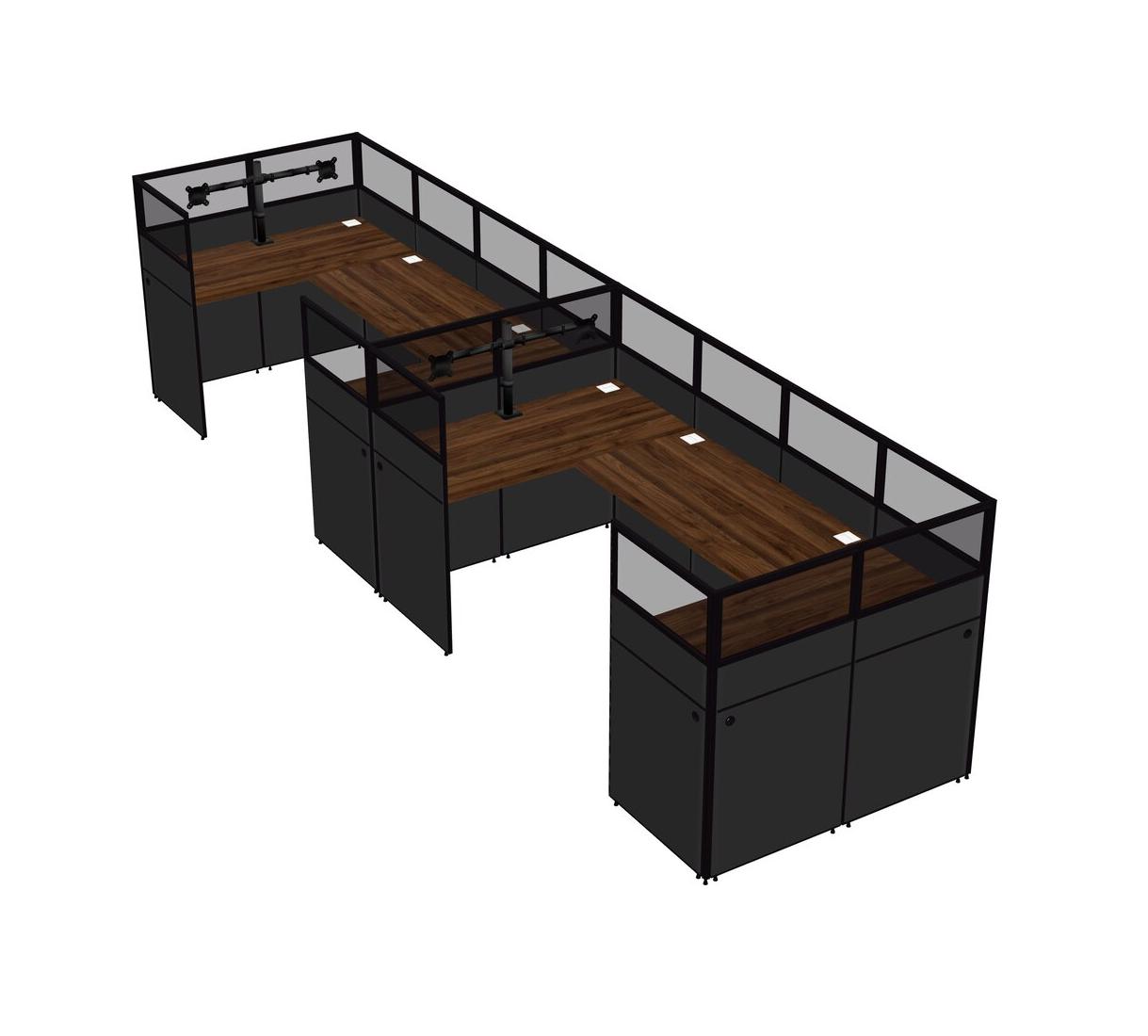 Système De Panneaux En U En Noyer Columbia Pour 2 Personnes + Bras De Moniteur (bras Doubles) Pour 2 Utilisateur(s)