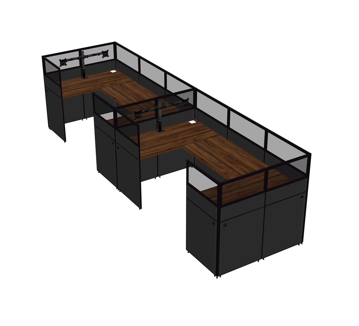 Système De Panneaux En U En Noyer Columbia Pour 2 Personnes + Bras De Moniteur (bras Doubles) Pour 2 Utilisateur(s)