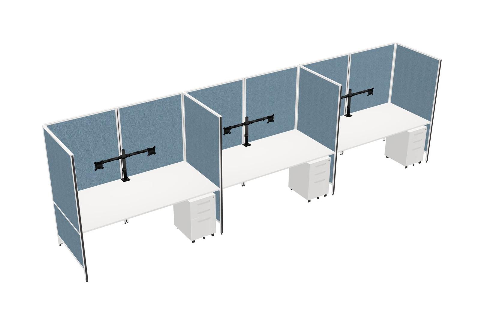 Système De Panneaux Flexibles Blancs Pour 3 Tiroirs Mobiles En Métal Et Bras D'écran (bras Doubles)