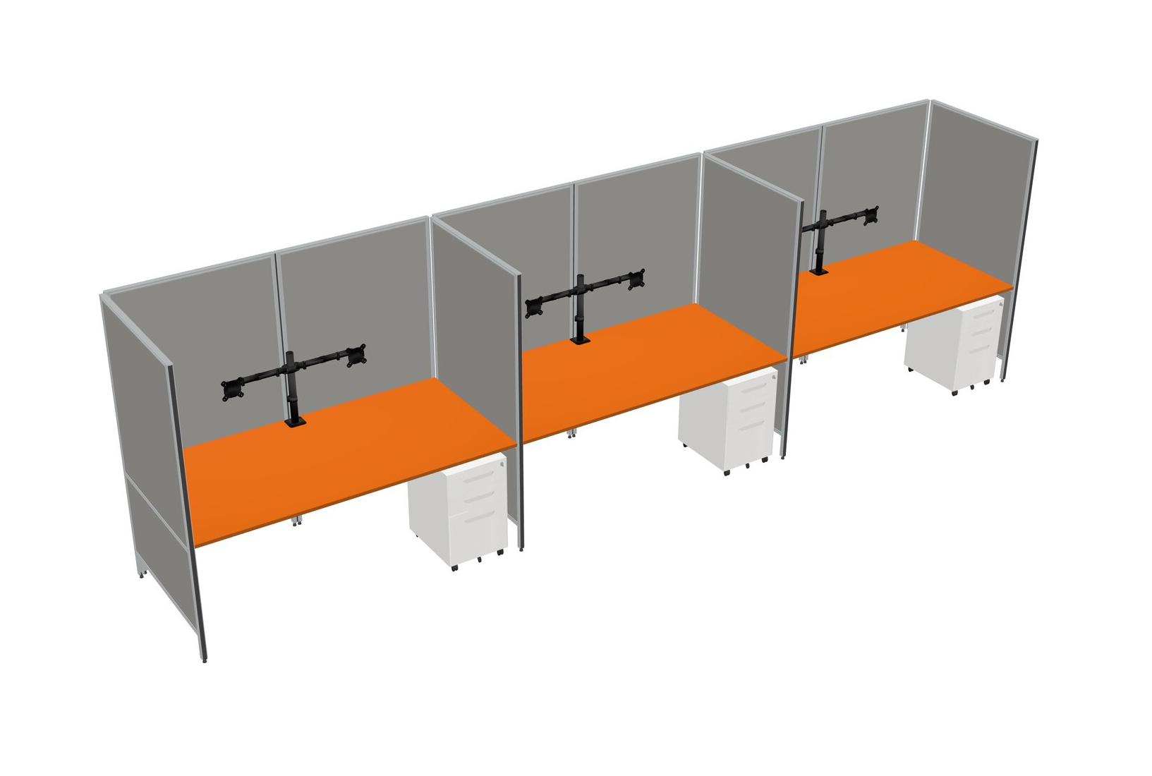 Système De Panneaux Flexibles Orange Pour 3 Tiroirs Mobiles En Métal Et Bras D'écran (bras Doubles)