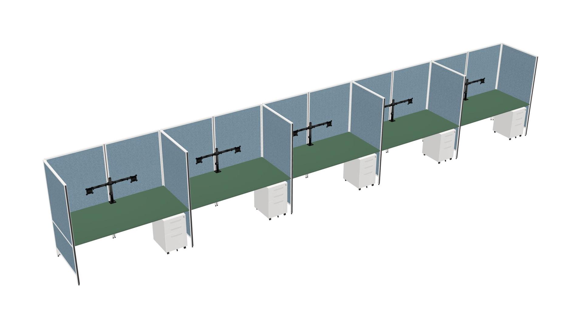 Système De Panneaux Flexibles Verts Pour 5 Tiroirs Mobiles En Métal Et Bras D'écran (bras Doubles)