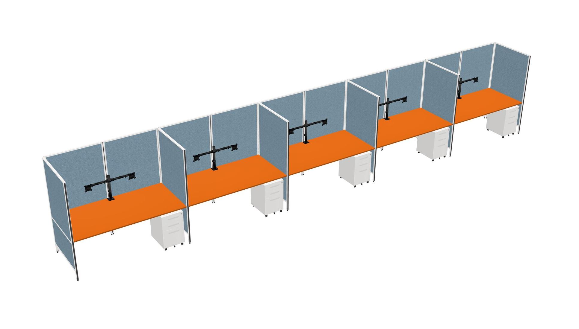 Système De Panneaux Flexibles Orange Pour 5 Tiroirs Mobiles En Métal Et Bras D'écran (bras Doubles)