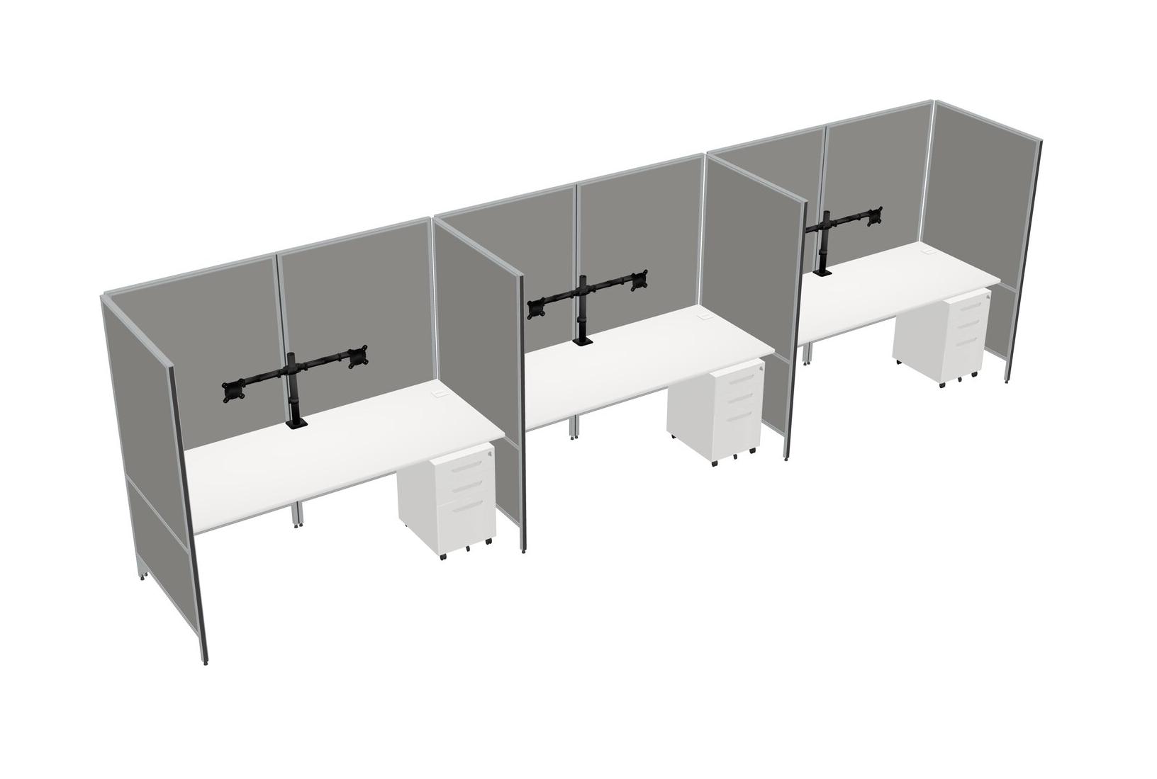 Système De Panneaux Flexibles Blancs Pour 3 Tiroirs Mobiles En Métal Et Bras D'écran (bras Doubles)