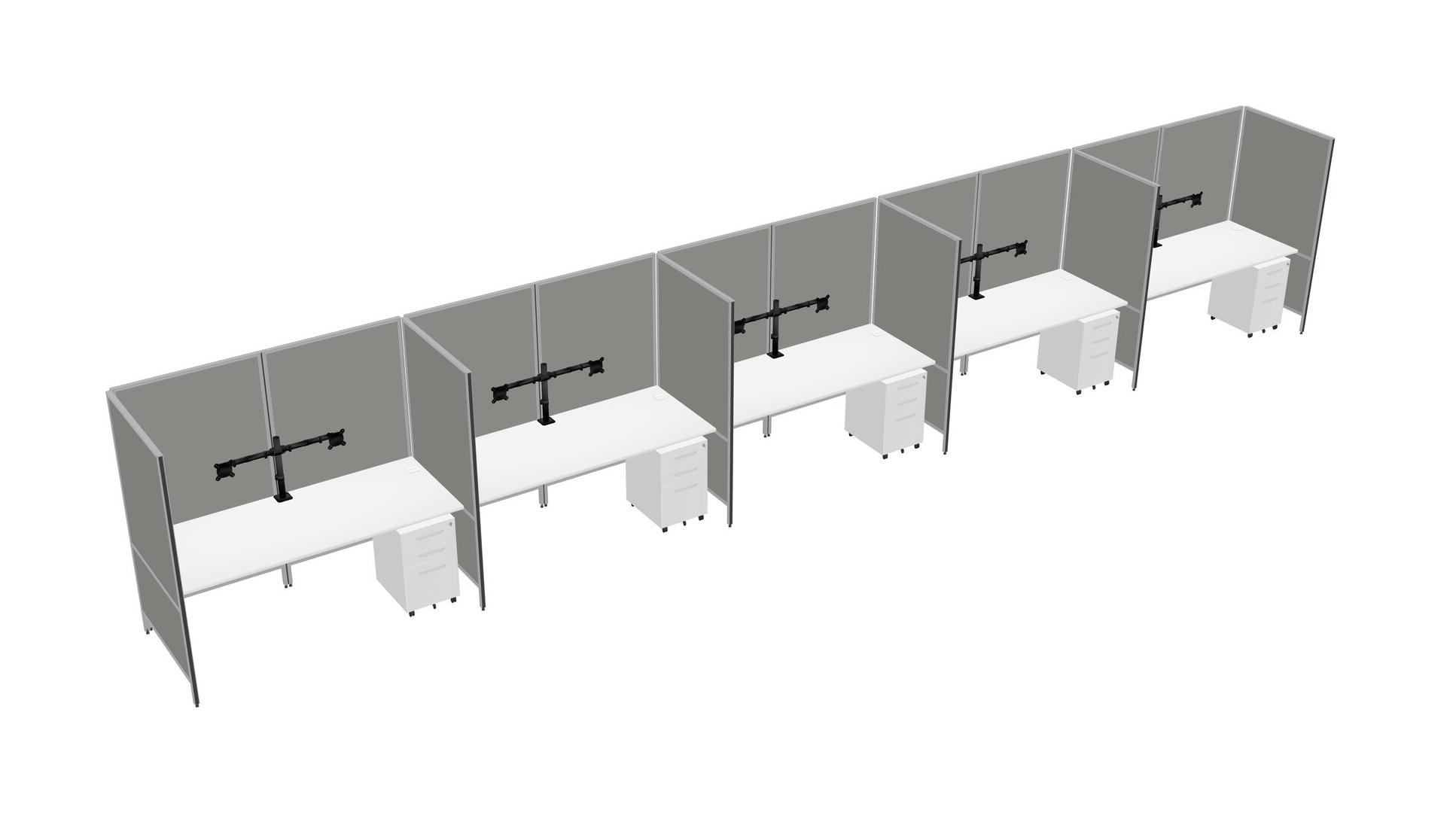 Système De Panneaux Flexibles Blancs Pour 5 Tiroirs Mobiles En Métal Et Bras D'écran (bras Doubles)