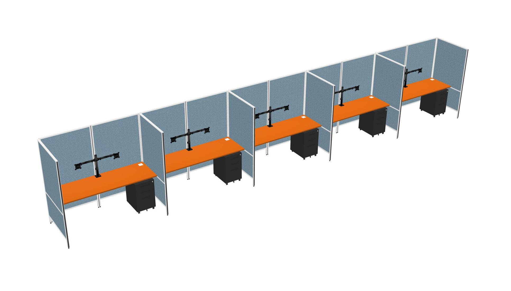 Système De Panneaux Flexibles Orange Pour 5 Tiroirs Mobiles En Métal Et Bras D'écran (bras Doubles)