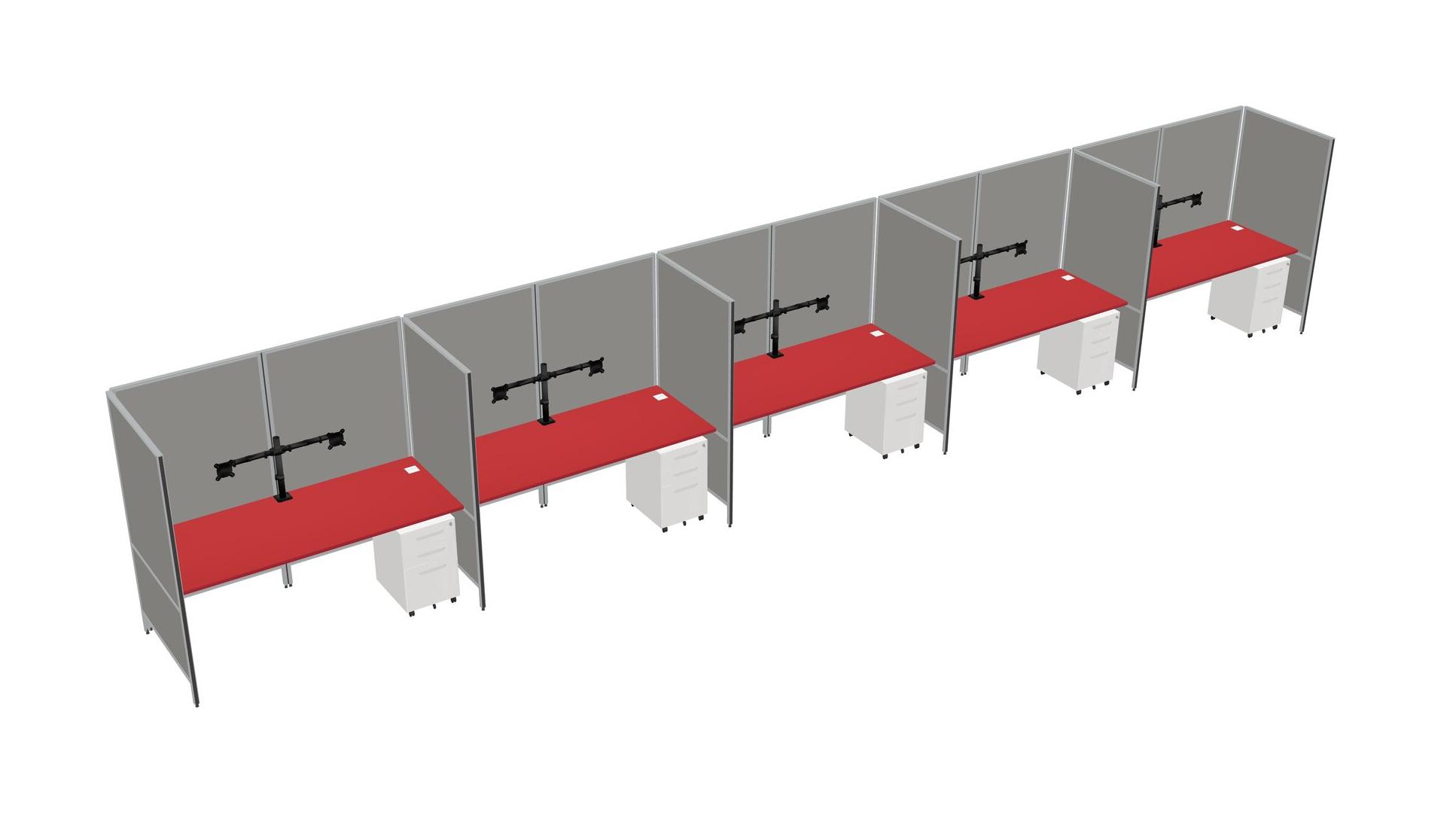 Système De Panneaux Flexibles Prism Red Pour 5 Tiroirs Mobiles En Métal Et Bras D'écran (bras Doubles)