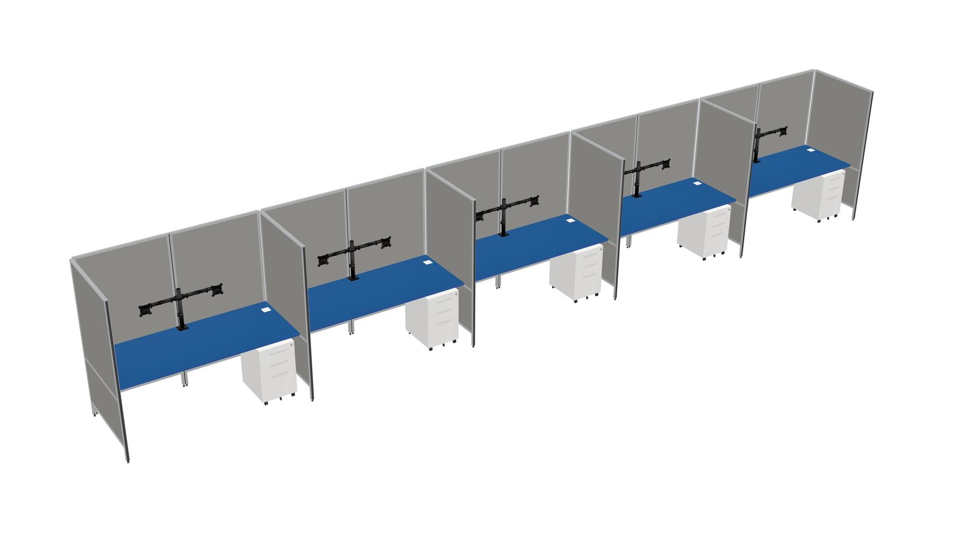 Système De Panneaux Flexibles Prism Blue Pour 5 Tiroirs Mobiles En Métal Et Bras D'écran (bras Doubles)