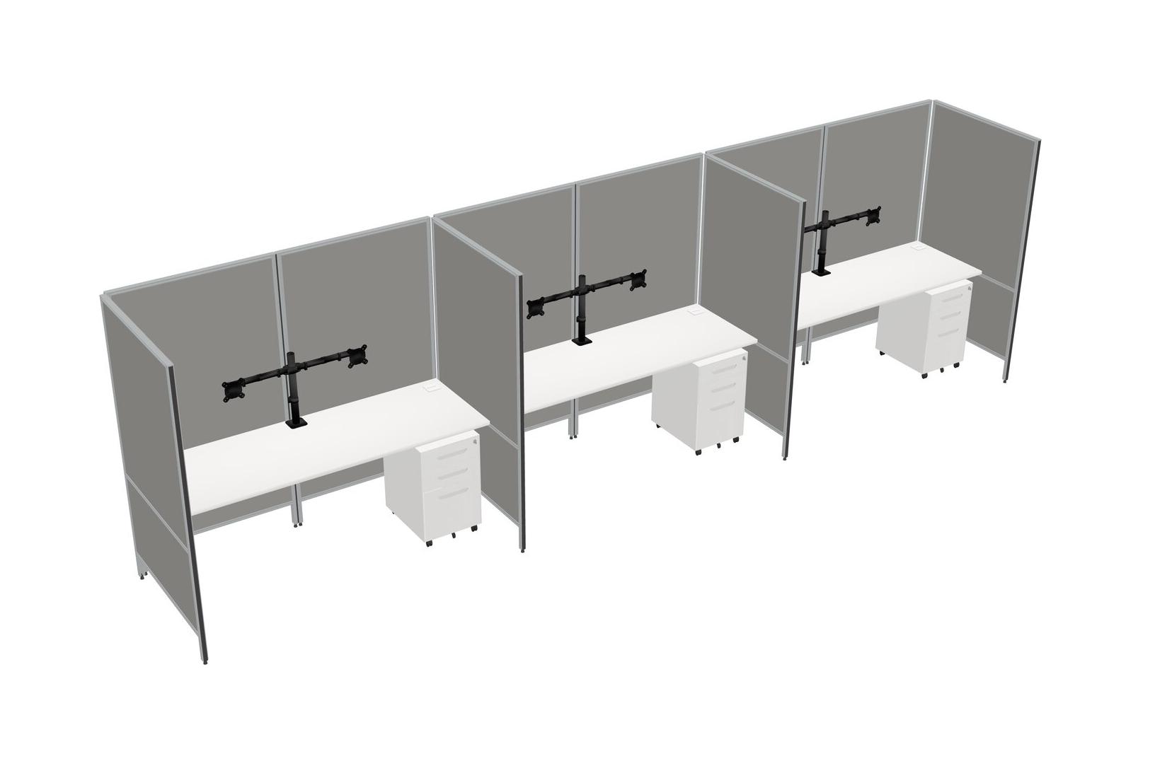 Système De Panneaux Flexibles Blancs Pour 3 Tiroirs Mobiles En Métal Et Bras D'écran (bras Doubles)