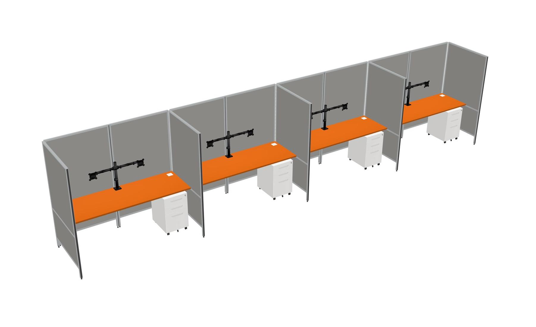 Système De Panneaux Flexibles Orange Pour 4 tiroirs Mobiles En Métal Et Bras D'écran (bras Doubles)