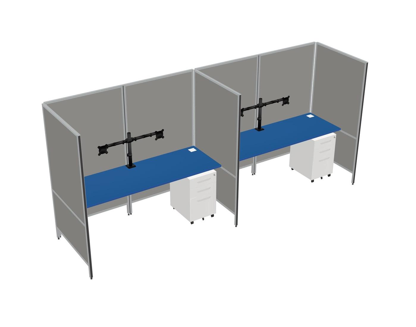 Système De Panneaux Flexibles Prism Blue Pour 2 + tiroirs Mobiles En Métal + bras Pour écran (bras Doubles)