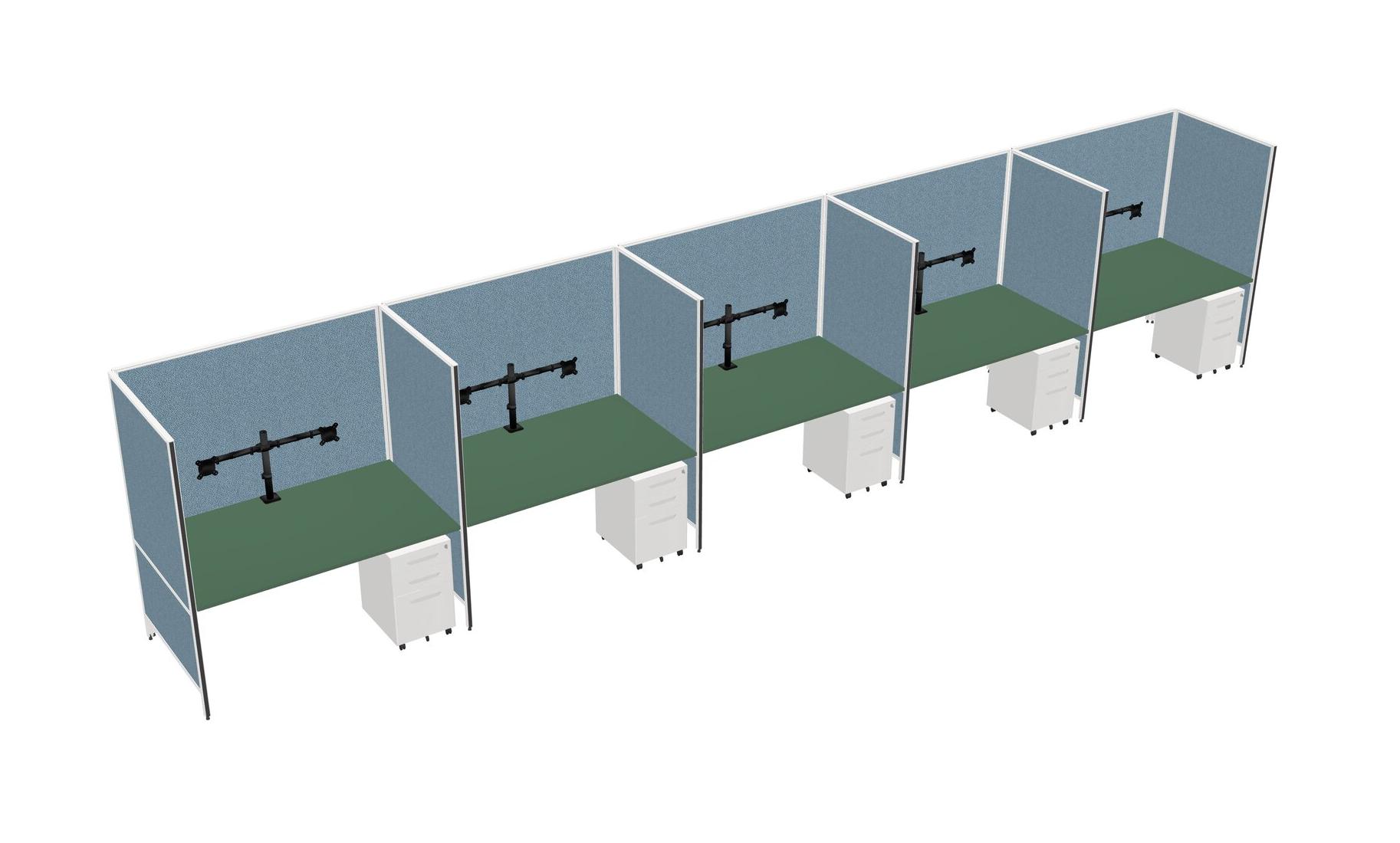 Système De Panneaux Flexibles Verts Pour 5 Tiroirs Mobiles En Métal Et Bras D'écran (bras Doubles)
