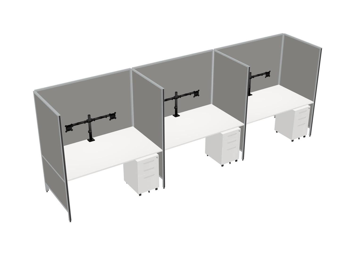 Système De Panneaux Flexibles Blancs Pour 3 Tiroirs Mobiles En Métal Et Bras D'écran (bras Doubles)